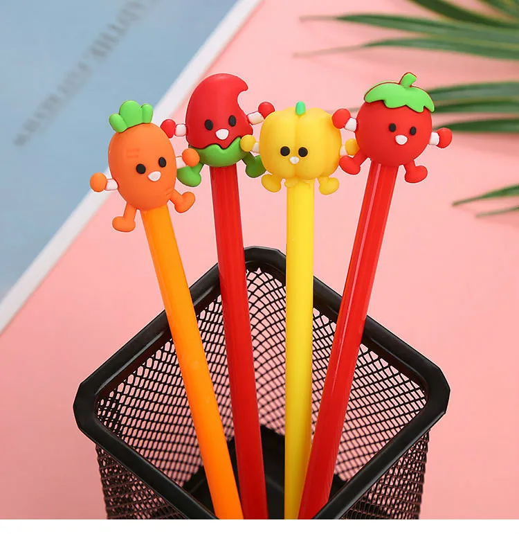 4 шт. Kawaii овощей мультипликационная гелевая ручка помидор морковь школьные канцелярские принадлежности милый канцелярский подарок с черными чернилами 0,5 мм ручки для подписи