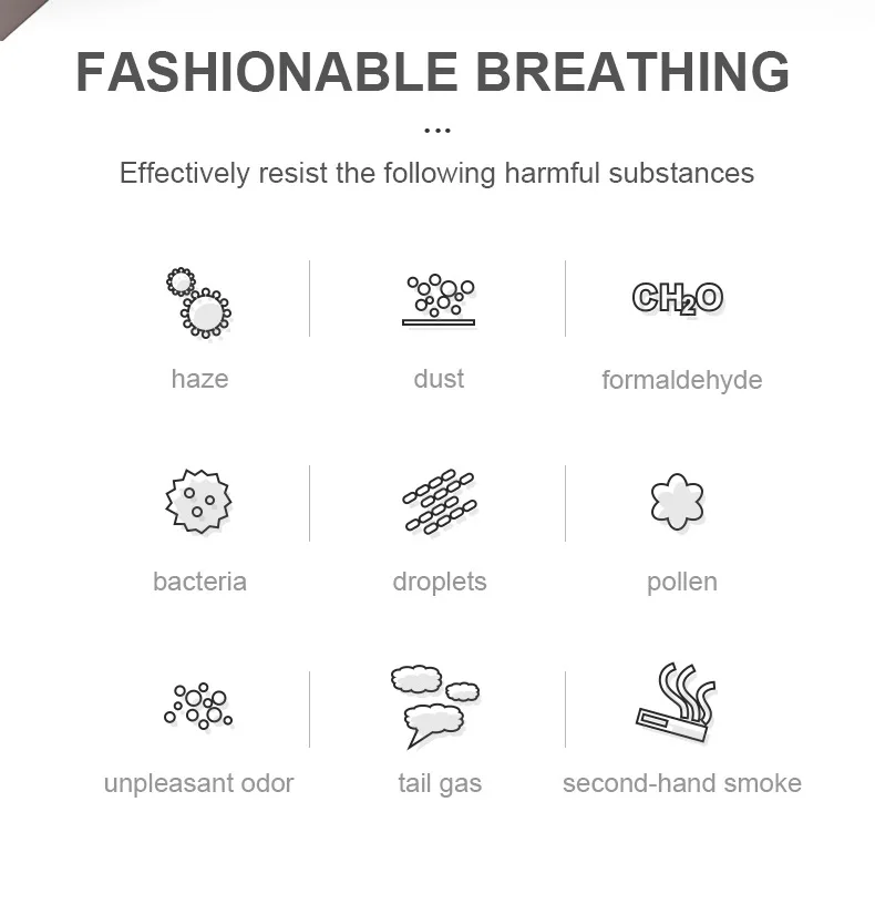 2. Этот продукт подходит для защиты воздуха в повседневной среде. Он может фильтровать мелкие частицы, смоги, капельки, выхлопные газы, формальдегид и т. д. В воздухе.