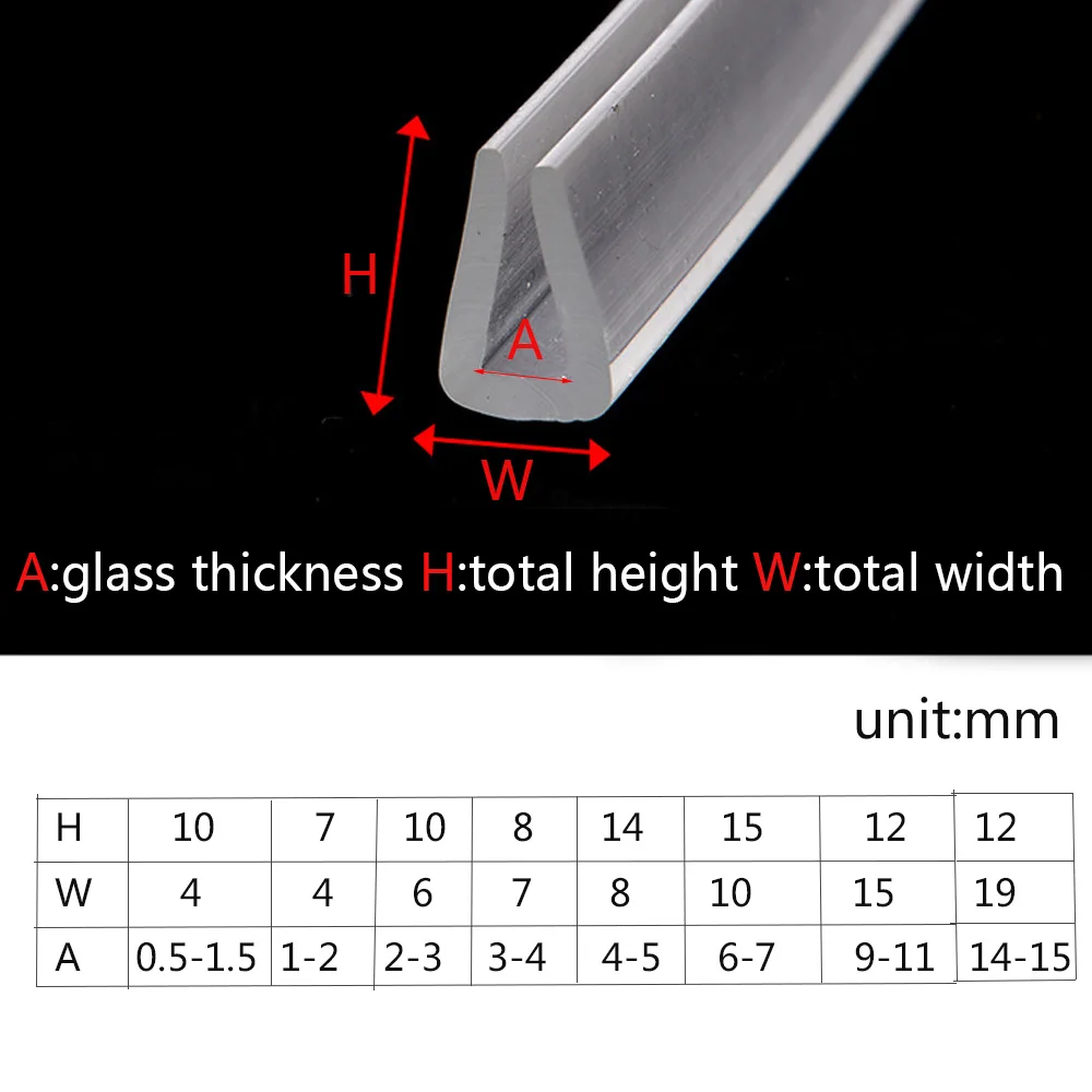 2 м U-канальная Резина окантовкой уплотнительная лента для душевой двери Стекло уплотнительная лента защита края уплотнитель несколько Размеры