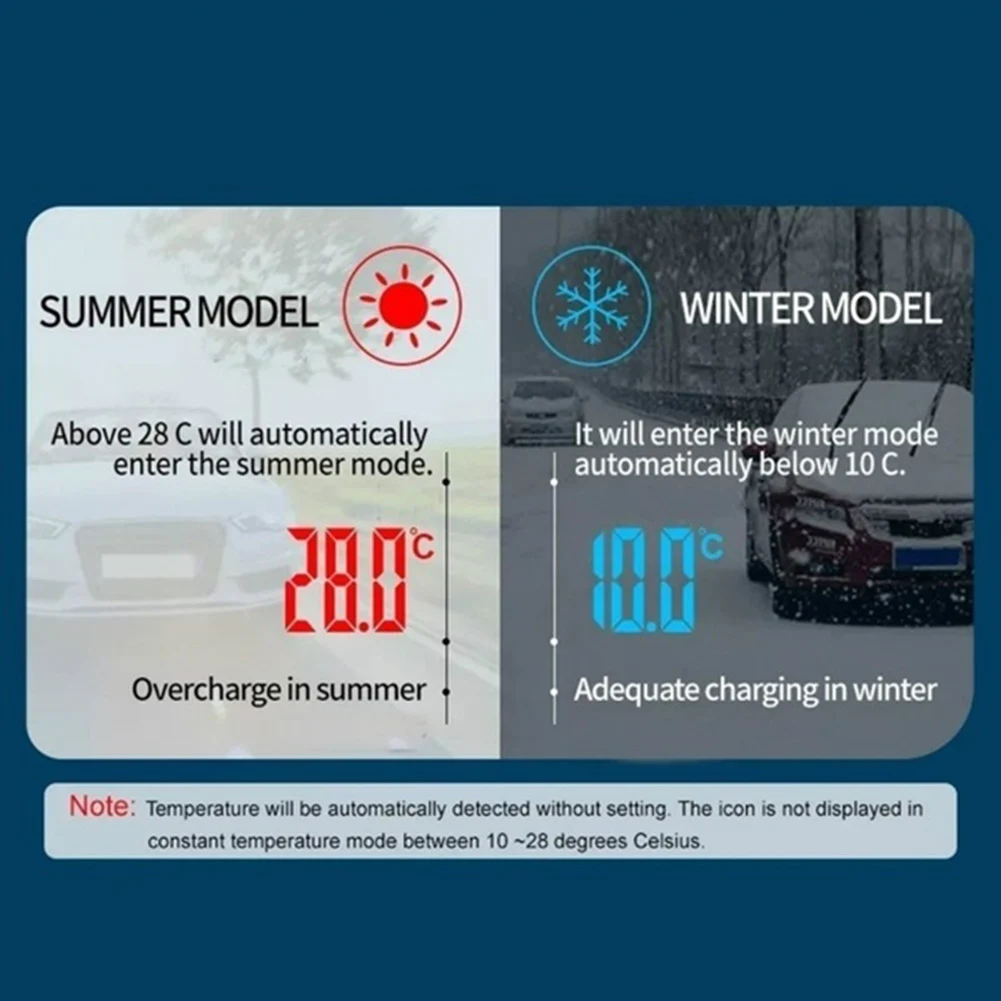* 2. Обнаружение температуры окружающей среды и автоматическая настройка напряжения зарядки в соответствии с температурой окружающей среды для защиты аккумулятора.