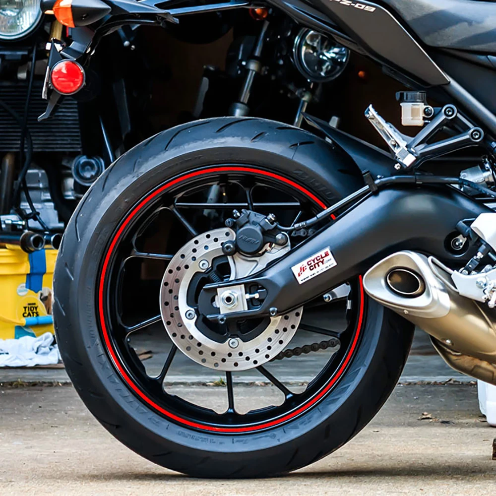 Одного комплекта достаточно для оклейки двух мотоциклетных колес с обеих сторон или четырех автомобильных колес (по 4 полоски на диск).
