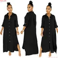-30% распродажа льняное платье на пуговицах с рукавом три четверти для женщин осень 2020 рубашка богемное платье модный стиль африканские платья размера плюс