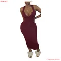 Женское платье миди размера плюс 2020, без рукавов, на тонких бретельках, с завязками, с открытой спиной, Сексуальные вечерние, элегантные, облегающие миди платья