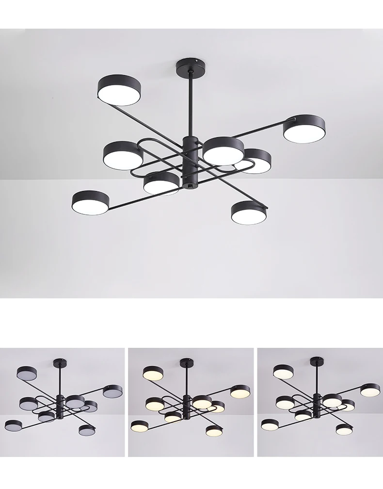 Feature: 1.This is modern minimalist style lamp suitable for a variety of houses. 2.It is fashion,warm and vivacious. 3.It applicables by living room,bedroom,restaurant,dining room,kitchen,office,study room,cafe,hotel,villa and loft etc.. Specification: Color: Black/Gold Material: Iron+Acrylic Color Temperature: Warm White / Cool White / Brightness Dimmable 1. Cool White: No remote control. 2. Warm White: No remote control. 3. Brightness Dimmale: It have cool white,natural white,warm white.It can adjust the brightness and color,adjust brighter to darker and the ability to switch from cold light to warm,have remote control.(not contain battery) Lighting Source: LED Voltage: AC85V~240V (Please note the voltage when ordering or contact us!) Size: 4heads D76*H75cm(space:8-12㎡) 6heads D112*H80cm(space:10-15㎡) 8heads D112*H85cm(space:15-20㎡) Package Content: 1*Lamp Note: 1. Please turn off the power before installation to avoid electric shock. 2. Please handle it gently to avoid scratching yourself if the product is damaged. 3. Keep the product away from children to prevent injury. 4. The ceiling is installed firmly to avoid loosening and falling. 5. Please let a professional electrician install it to avoid malfunction. 6. Please connect the live line and neutral line correctly, and do not connect the two lines in reverse. (Some products do not need to distinguish between the live line and neutral line) 7. Please keep your hands dry when installing this product. 8. This product is only suitable for indoor use. 9. It is forbidden to change the circuit of the product itself. 10. Please assemble the product first, and then install it on the ceiling. 11. Manual measuring, please allow 1 ~ 3cm error,thank you for your understanding. 12. Due to the difference between different monitors, the picture may not reflect the actual color of the item. We guarantee the type is the same. Any Problems, Please contact customer services,We will reply you in the first time.
