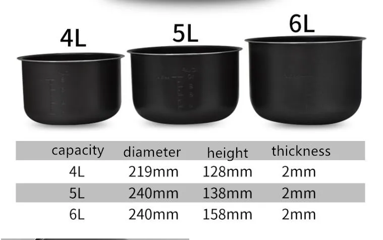 Набор включает: 1x внутренний кастрюля Состояние: абсолютно новый Материал: алюминиевый сплав, Особенности: Электрическая рисоварка объемом 3 л/4 л/5 л, 6 л, внутренняя кастрюля, пароварка, ложки для риса и мерная чашка-бесплатные подарки. Изготовлен из высококачественного материала, прочный и пищевой, не содержит бисфенола А, одобрен FDA, безопасен и облегчен в использовании. Алюминиевый корпус с антипригарным покрытием, который легко чистится, устойчив к царапинам и безопасен для использования с металлической утварью. Сильная способность к сбору энергии и быстрое приготовление риса, позволяет легко и удобно готовить несколько блюд. Прекрасный кухонный инструмент, который вы должны иметь, подходит для большинства электрических рисоварок. Полезные советы: Замеры делаются вручную, поэтому учитывайте небольшие погрешности. Цвет на фото может немного отличаться от реального товара из-за особенностей цветопередачи различных мониторов.