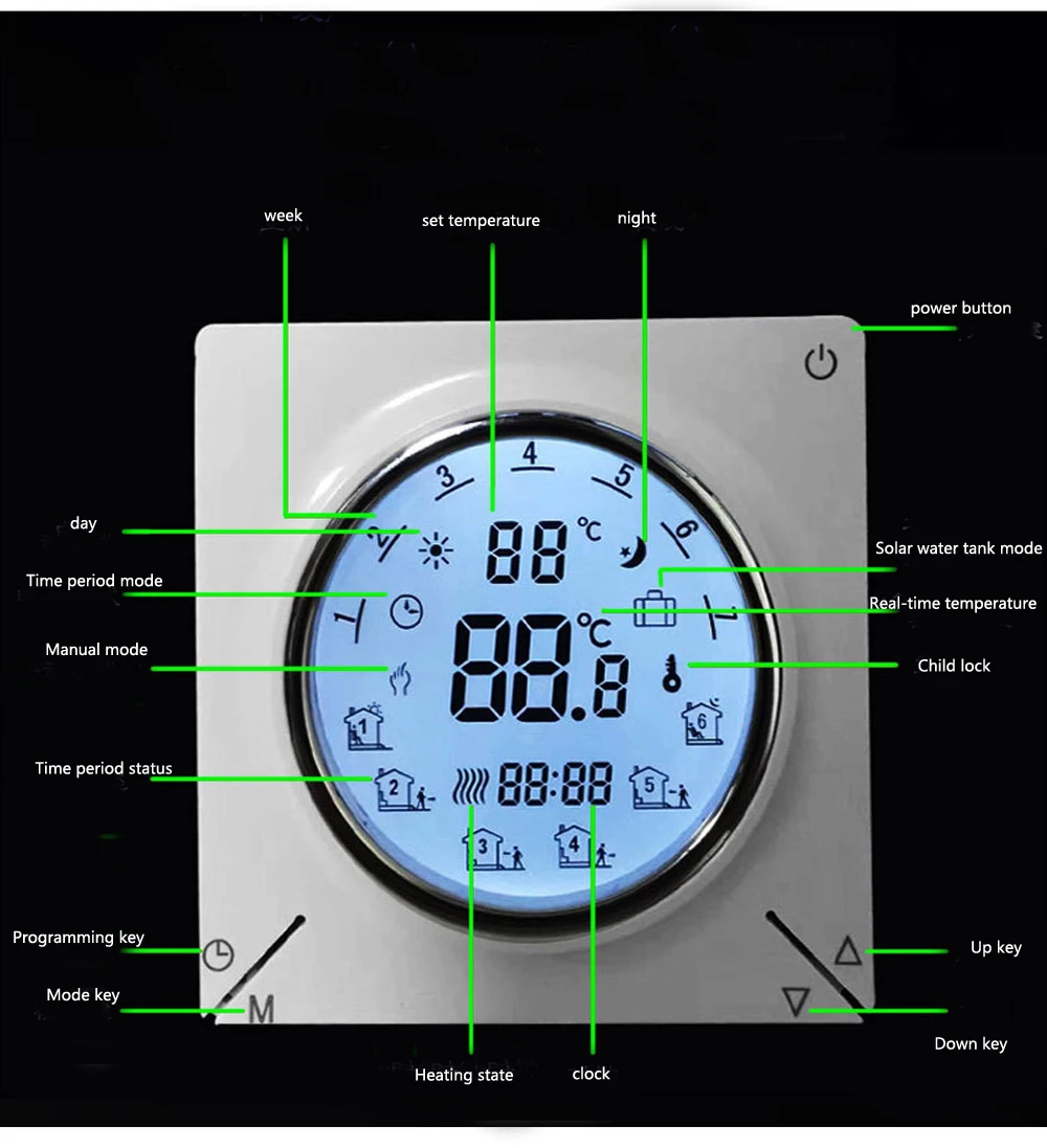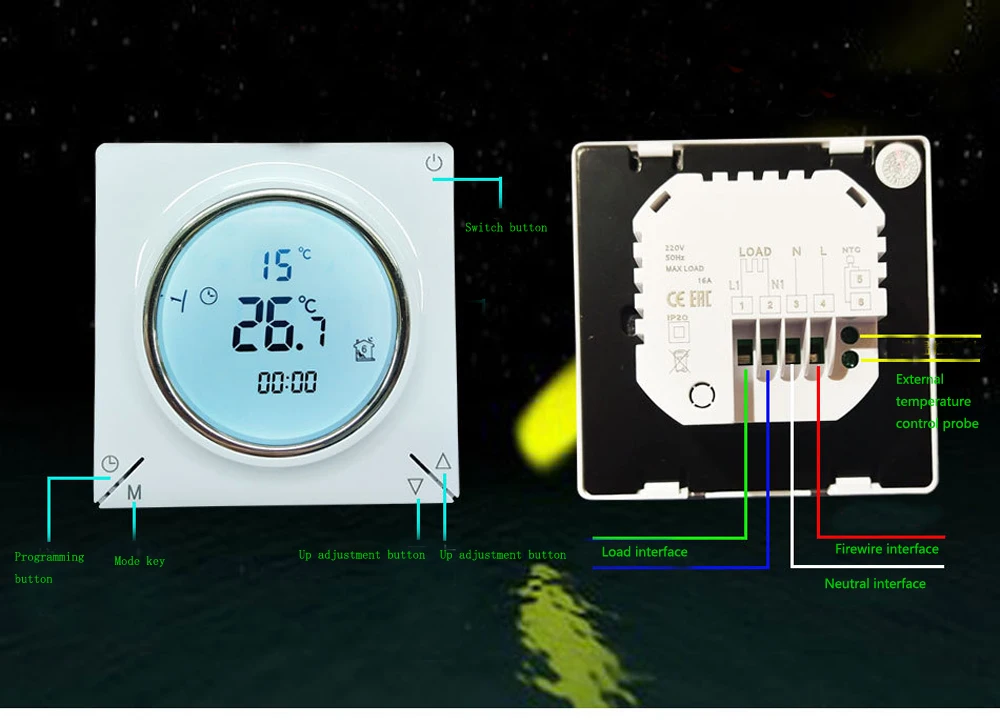 Упаковочный лист: 1 термостат (со встроенным датчиком), 2 винта, 1 Инструкция (на английском языке)