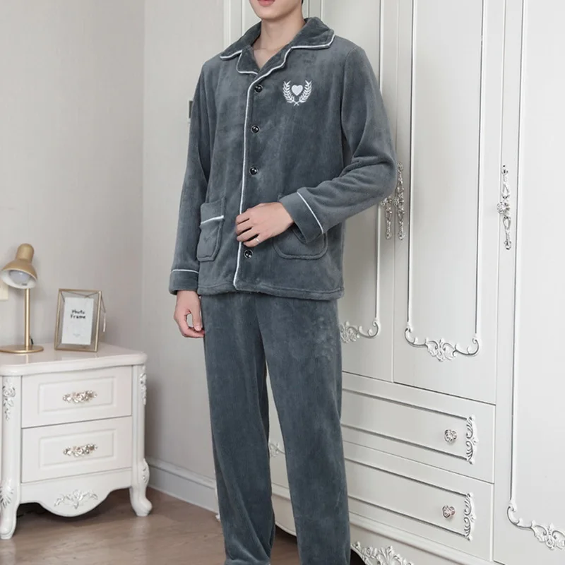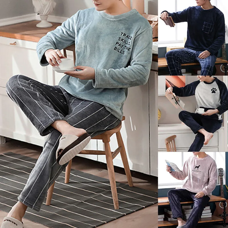 Пижамный комплект мужской зимний трехслойный стеганый фланелевый утепленный