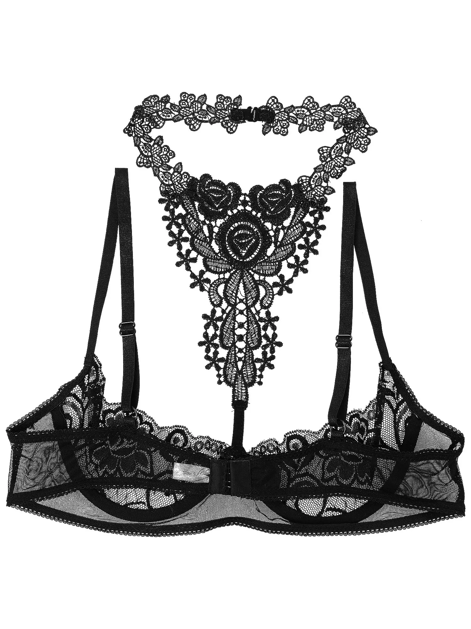 Сексуальное женское нижнее белье, прозрачный кружевной бюстгальтер с цветочным рисунком, топ с лямкой на шее, нижнее белье для женщин, бюстгальтер на бретельках, Горячее Эротическое белье для секса
