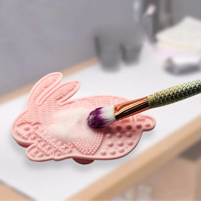 Портативная Милая мультяшная Кисть для макияжа с кроликом, Очищающий коврик на присоске, убирающий Макияж для лица, естественная и чистая Кисть для макияжа