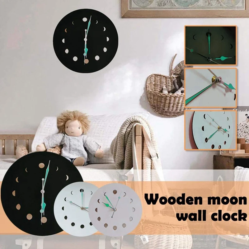Луна фазы настенные часы Светящиеся Настенные часы Деревянный лунный настенные часы креативные Луна цикл домашние часы.