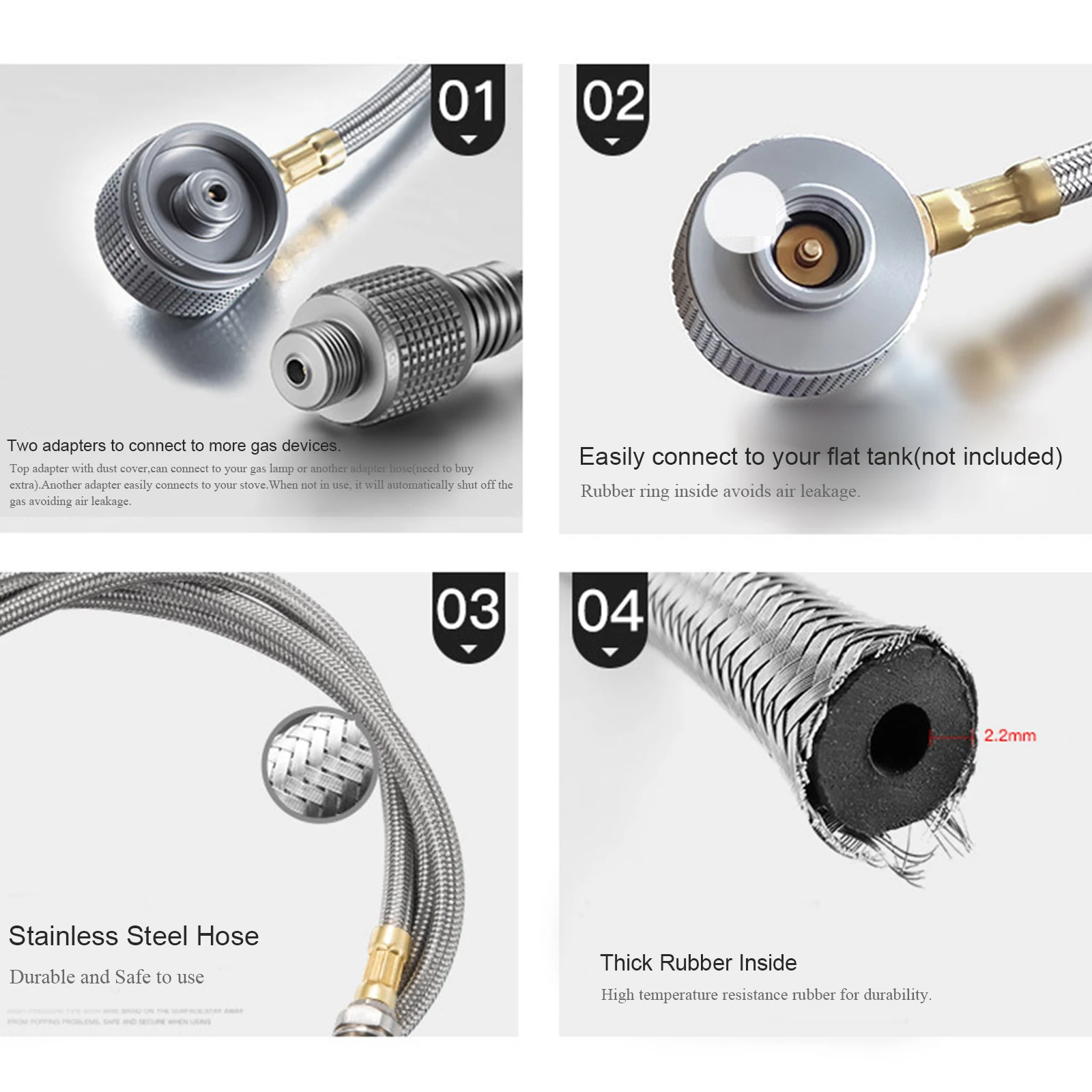 Два адаптера для подключения к большему количеству газовых устройств. Верхний Переходник С Пылезащитным покрытием, можно подключить к газовой лампе или другому адаптерному шлангу (необходимо дополнительно купить). Другой адаптер легко подключается к вашей печи.