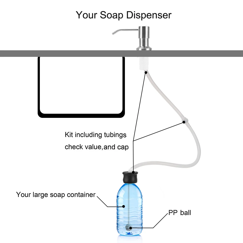 Колпачки: три спецификации для 99% мыльных контейнеровПрименимый Раковина: монтируемый диаметр отверстия (2,5-3,5 см); Монтируемый Толщина (2,4 см)Простая установка