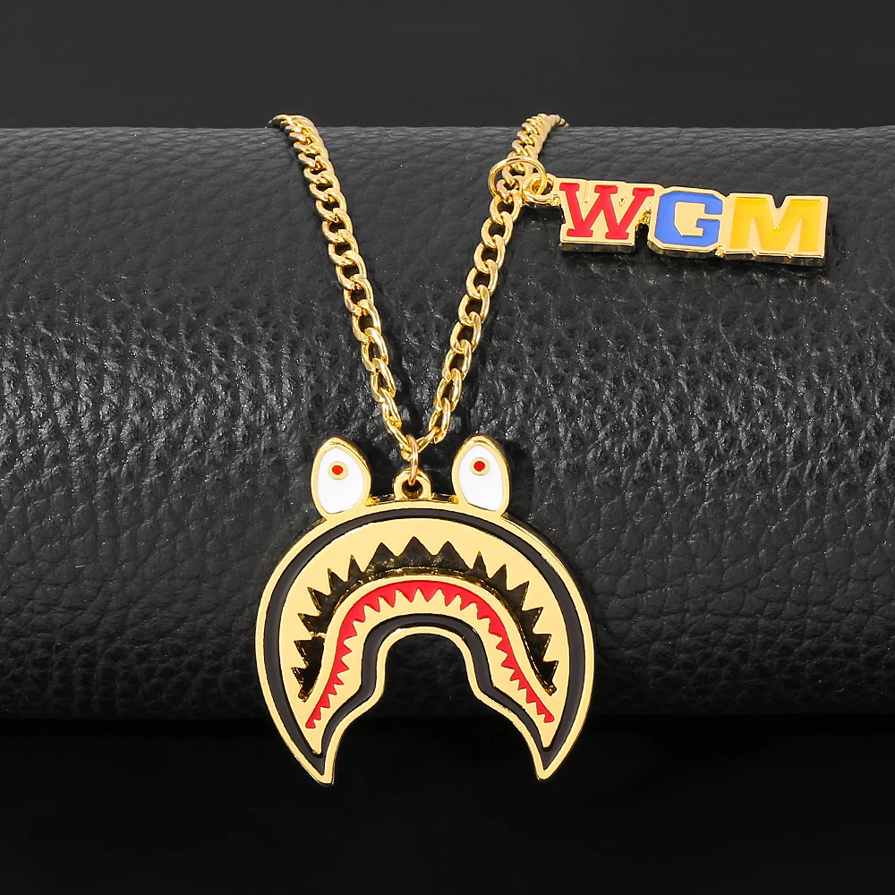 Ожерелье в стиле хип-хоп с большой акулой, Мужская Уличная культура, титановая мода, трендовая цепочка с буквами WGM, ожерелье для мужчин, рэппер, ювелирное изделие, подарок
