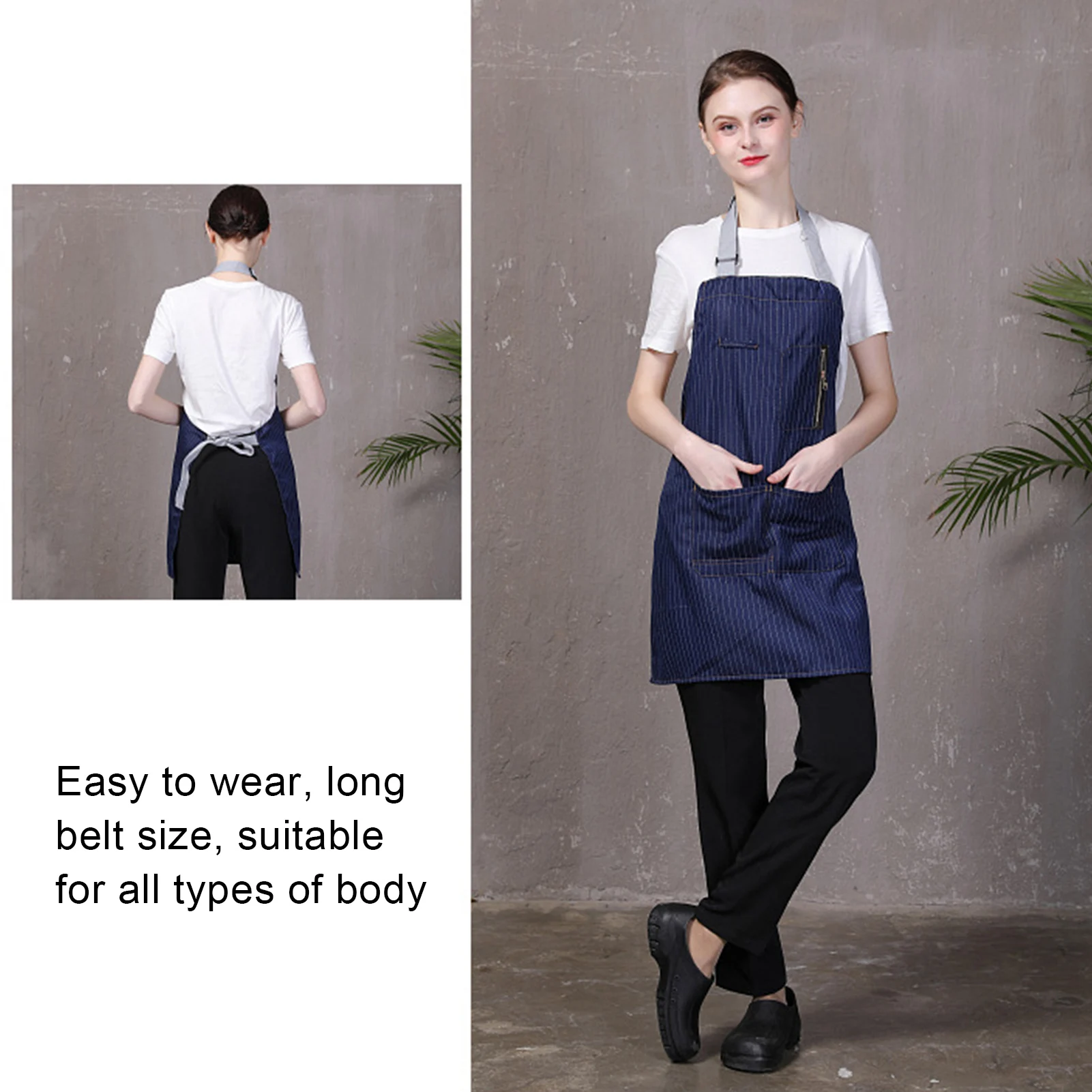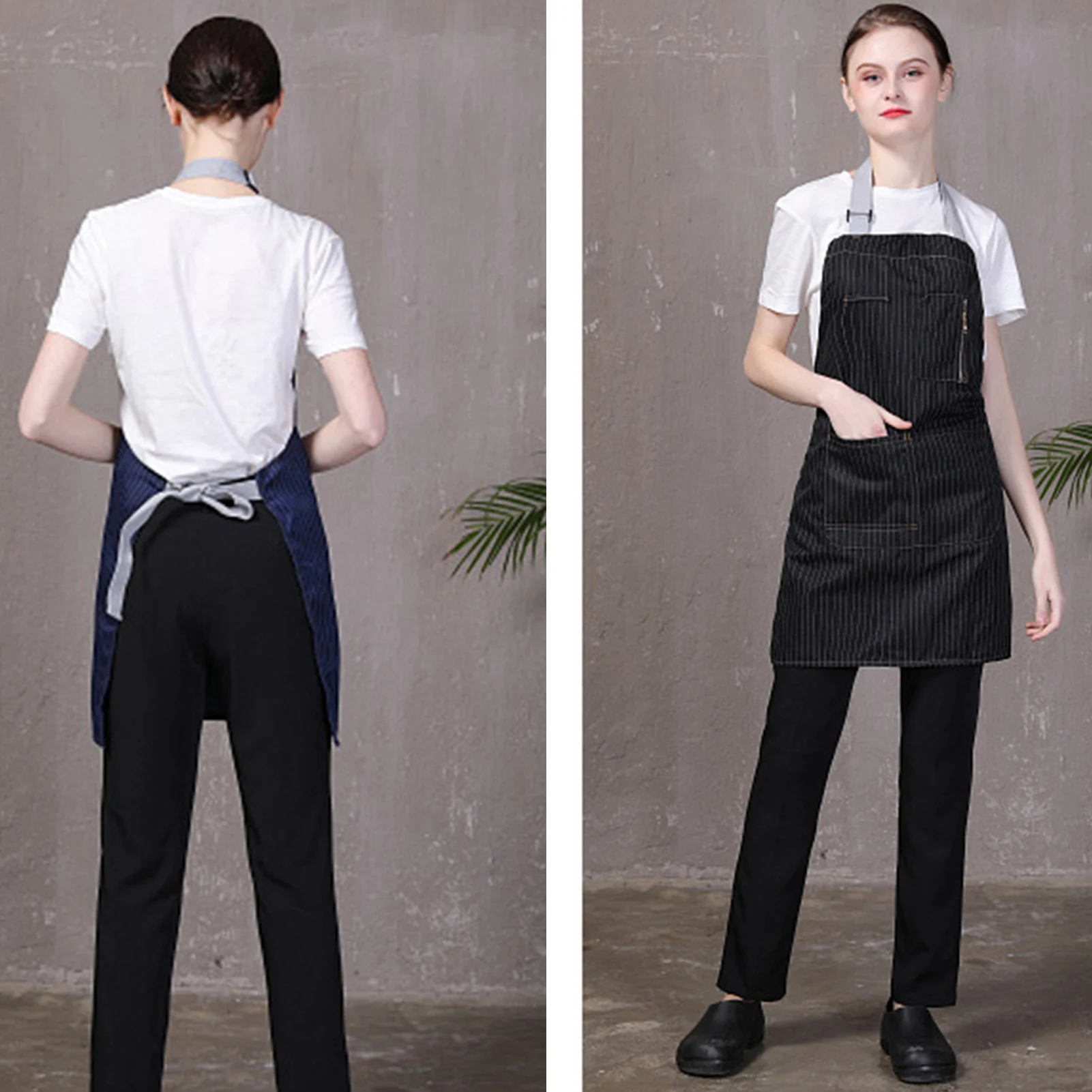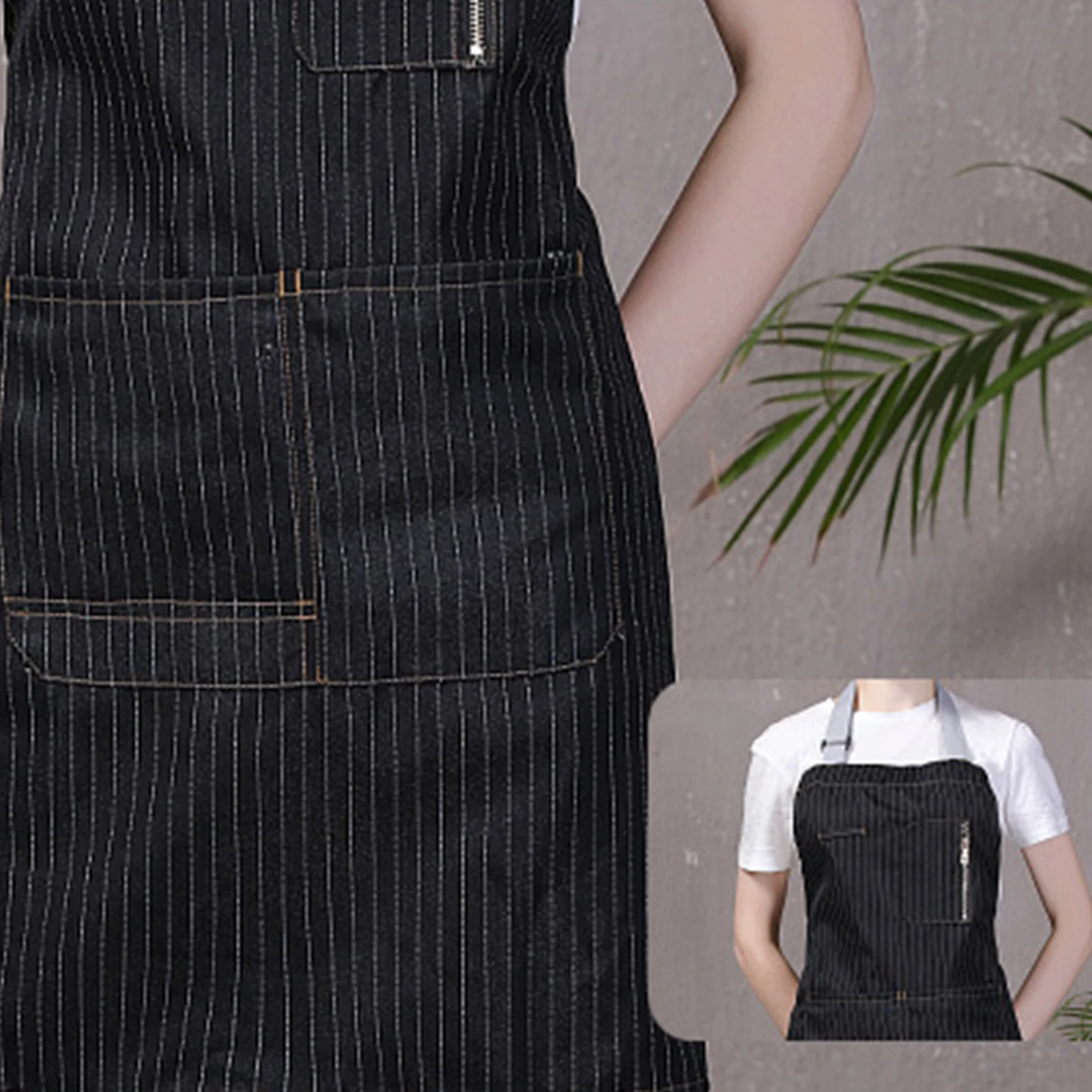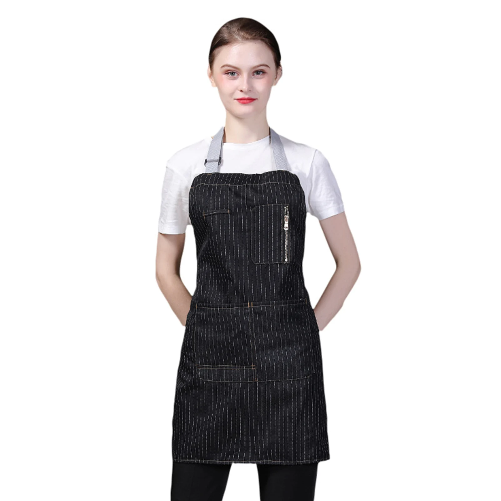 Регулируемый фартук шеф-повара в полоску для кухни, парикмахера, ресторана, унисекс
