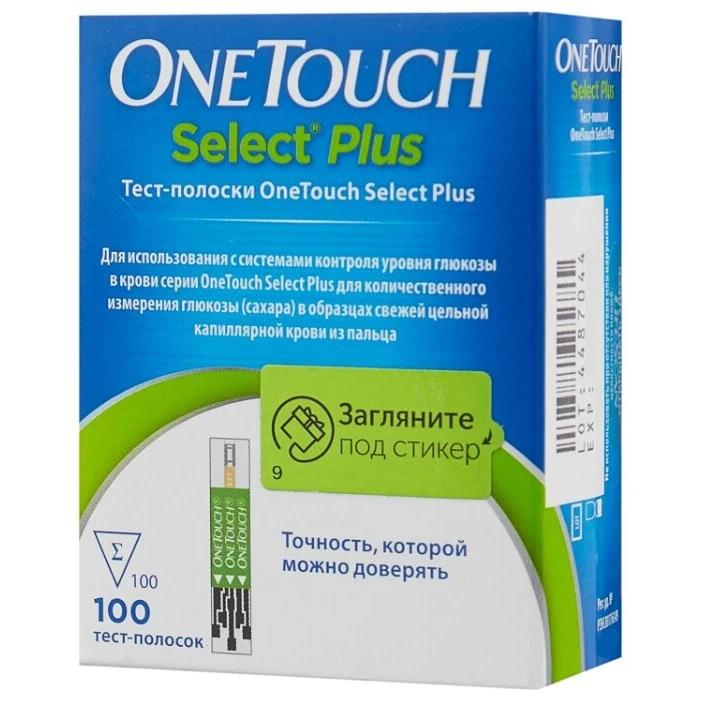 Тест-полоски OneTouch Select® Plus предназначены для использования с глюкометром OneTouch Select® Plus или OneTouch Select Plus Flex® для количественного измерения глюкозы (сахара) в образцах свежей цельной капиллярной крови из пальца.