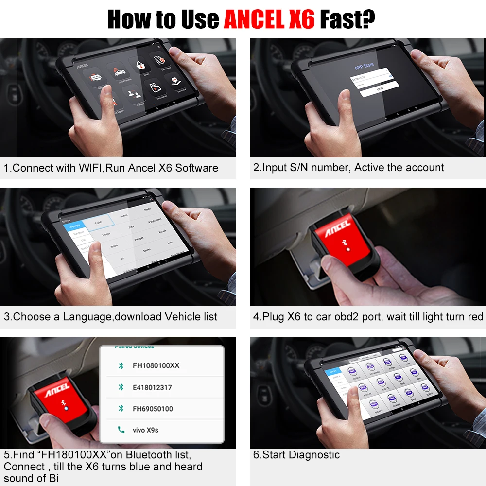 3. Предварительная установка программного обеспечения Ancel X6 на планшет покупателям не нужно устанавливать программное обеспечение, используйте продукт напрямую, удобно и быстро.