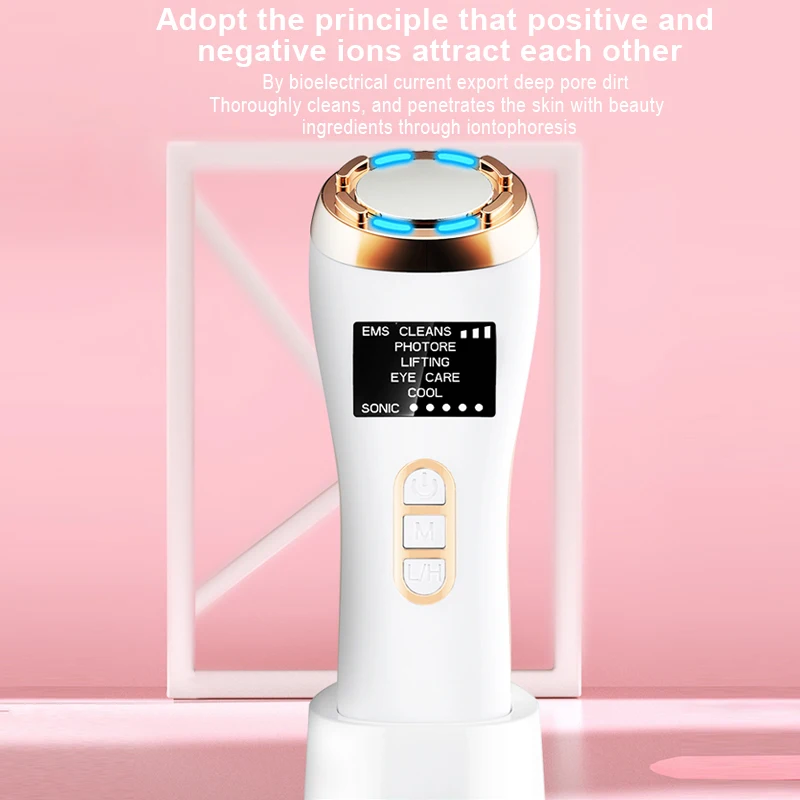 Очищающее и омолаживающее устройство красоты-это устройство для красоты лица, которое может глубоко очистить, активировать и омолаживать кожу, а также улучшить контуры лица. Он сочетает в себе положительные и отрицательные ионы + потепление + микро вибрация + красный свет + синий свет в одном: