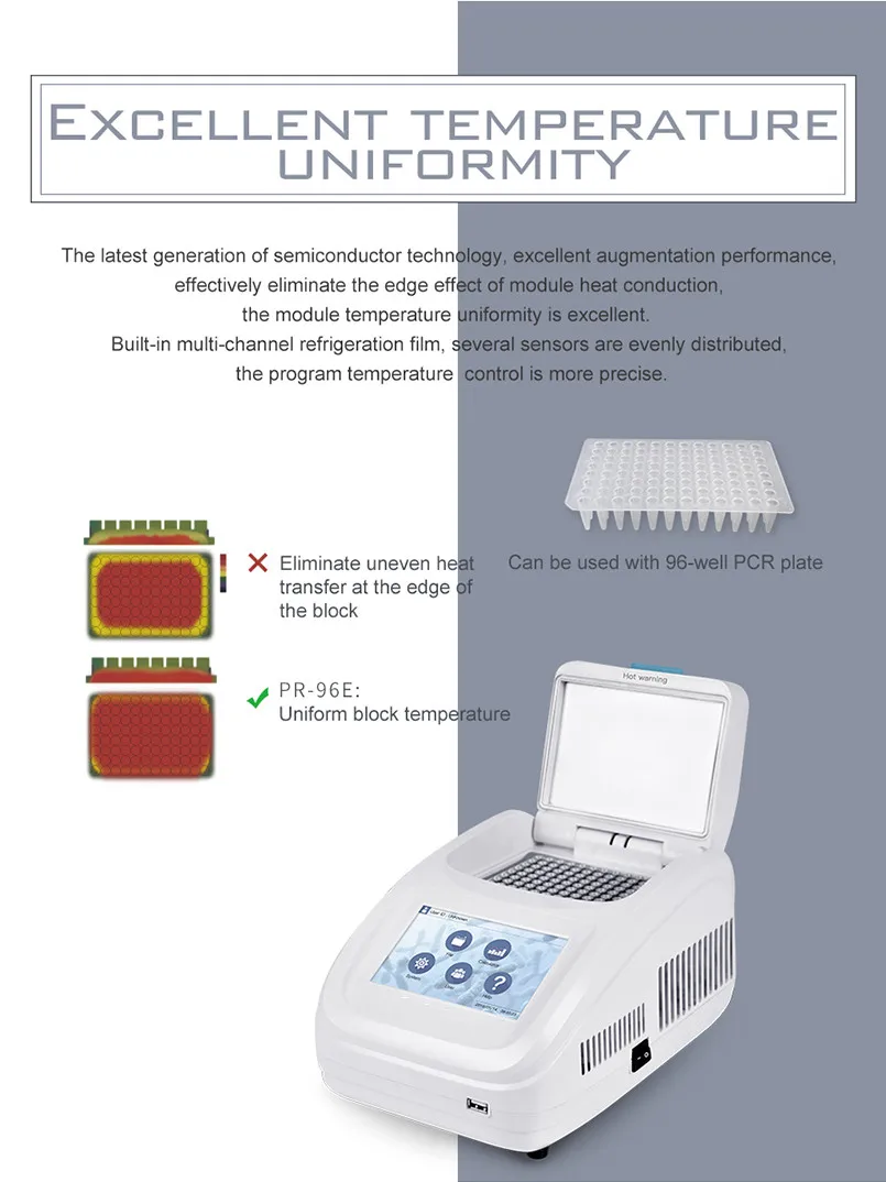 2. Новейшее поколение полупроводниковой технологии, отличное увеличение производительности, эффективно устраняет краевой эффект теплопроводности модуля, равномерность температуры модуля отличная. Встроенная Многоканальная холодильная пленка, несколько датчиков равномерно распределены, более точный программный контроль температуры.