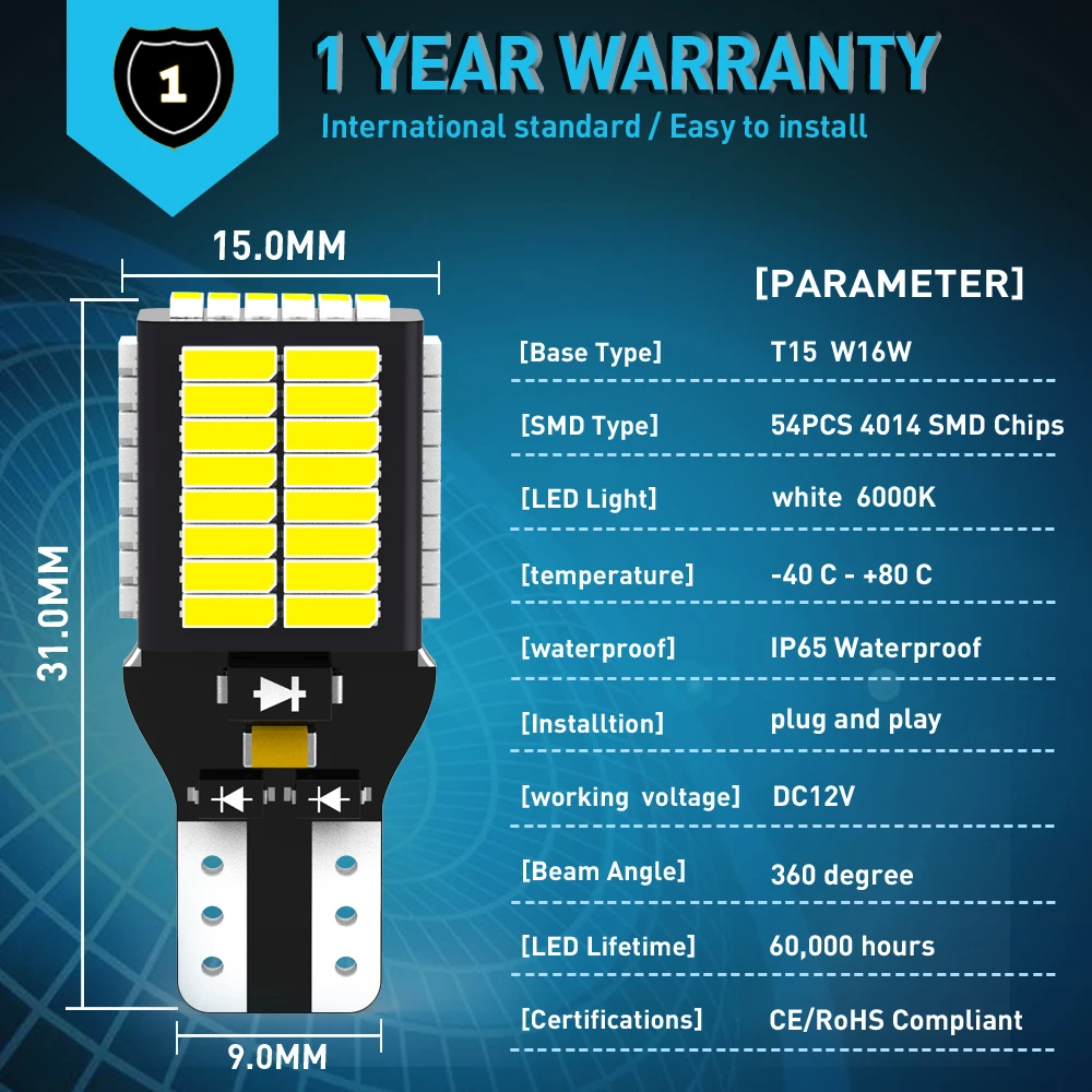 1. Только используется для автомобильных задних фар. 2.Canbus без ошибок: Встроенные нагрузочные резисторы canbus позволяют избежать кода ошибки OBC. ---- Пожалуйста, подтвердите вашу розетку перед покупкой, место установки указано только для справки. ----