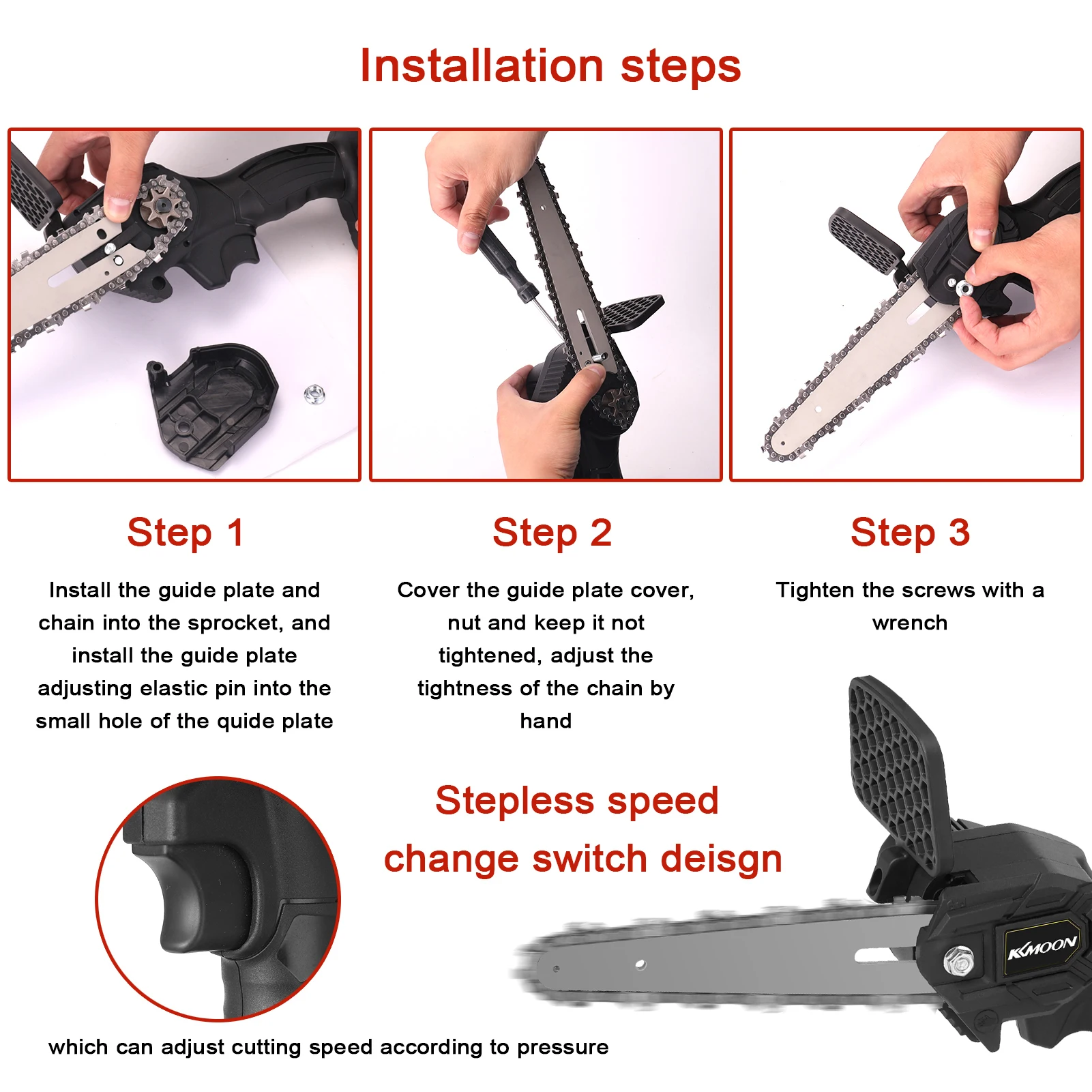 Бесступенчатая конструкция переключателя изменения скорости, который может регулировать скорость резки в соответствии с давлением, дает вам лучший опыт использования.