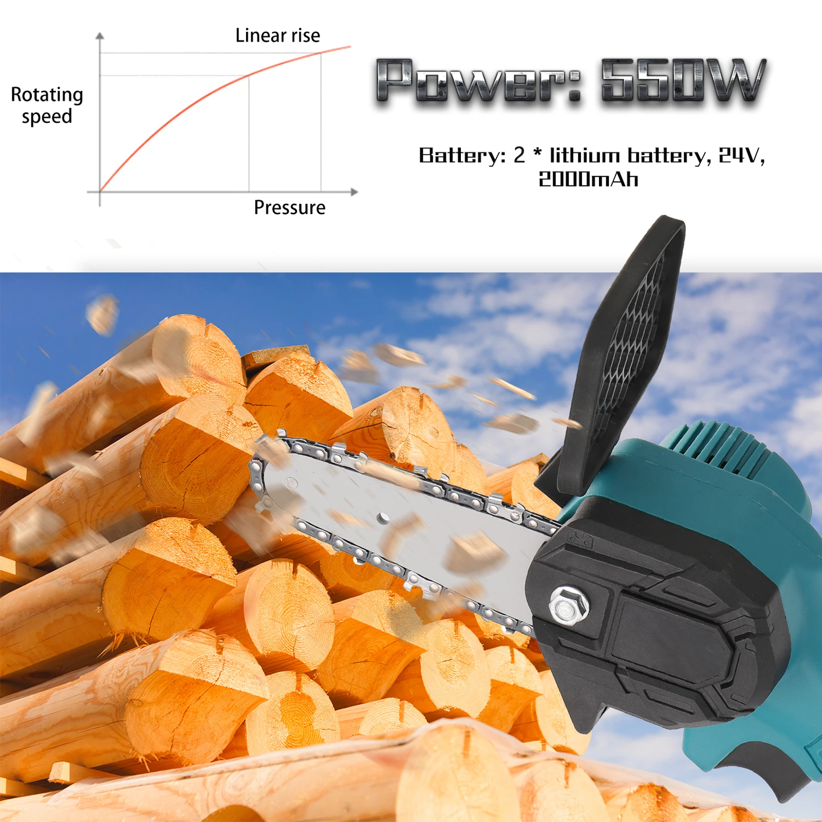 Беспроводной дизайн, легкий и портативный, легко носить с собой и пилить дерево.