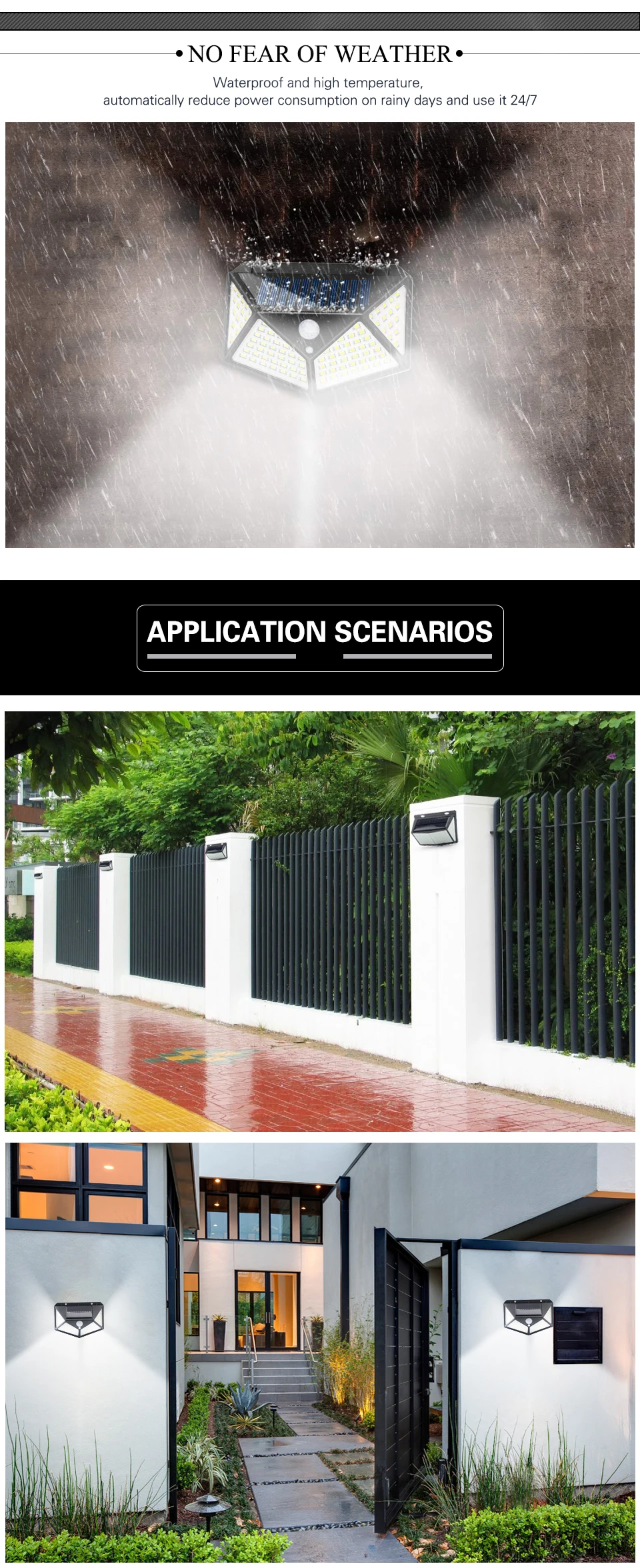 6. Убедитесь, что нет объектов, блокирующих его, и солнечная панель может получать солнечный свет. --- Пожалуйста, не устанавливайте светильник слишком близко к светильник льнику, это повлияет светильник льника.