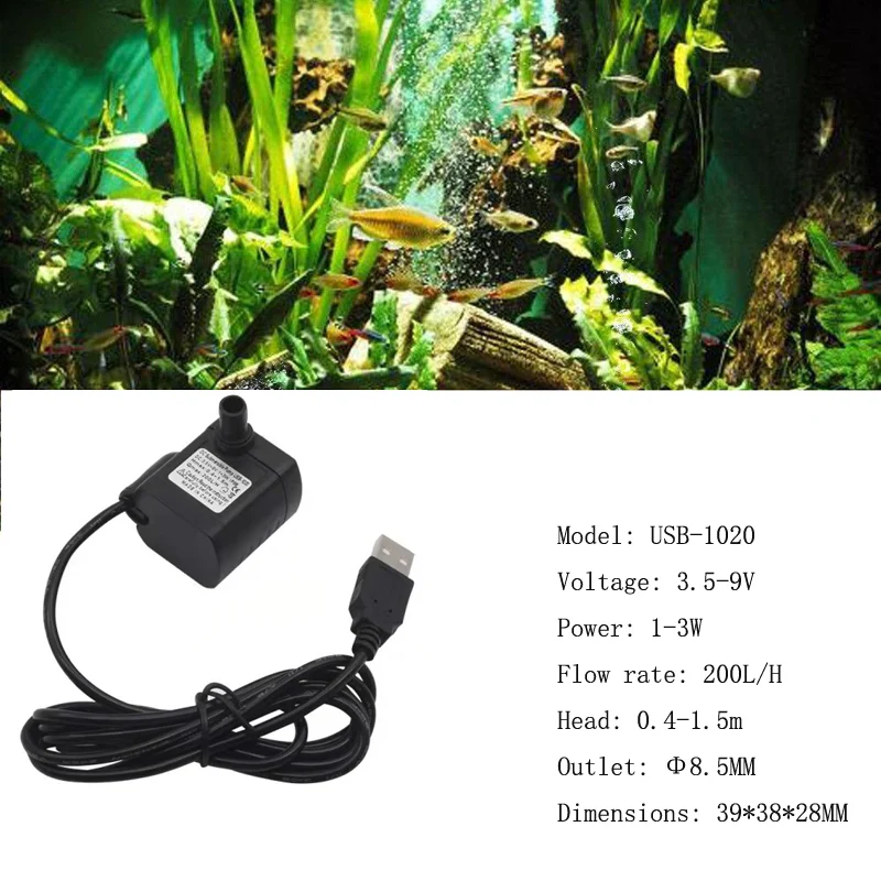 1. Этот USB погружной насос подходит для использования в аквариуме или аквариуме, он не шумит во время работы.