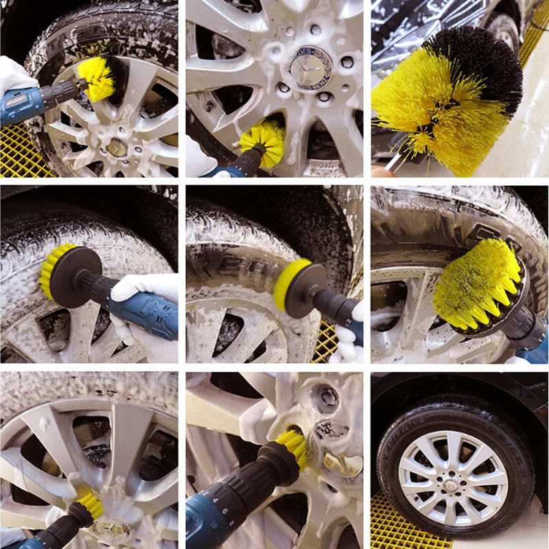 Этот комплект содержит нейлоновую силовую щетку средней жесткости и может быть подключен к вашему любимому беспроводному сверлу.