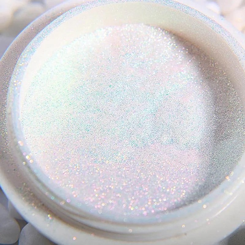 Это очень практичный неоновый порошок. Он блестящий и гладкий, с мелким порошком, жемчужным блеском, радужным зеркалом, оттенком цвета, здоровым и долговечным