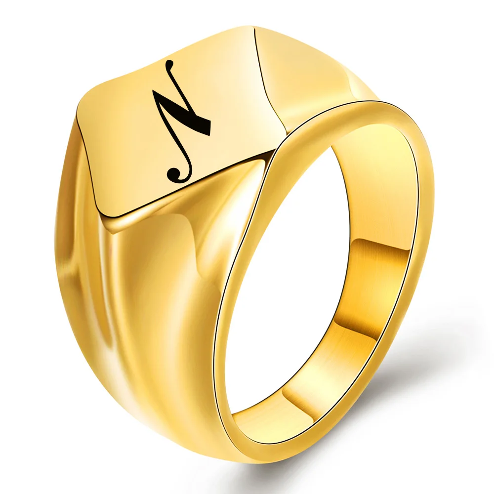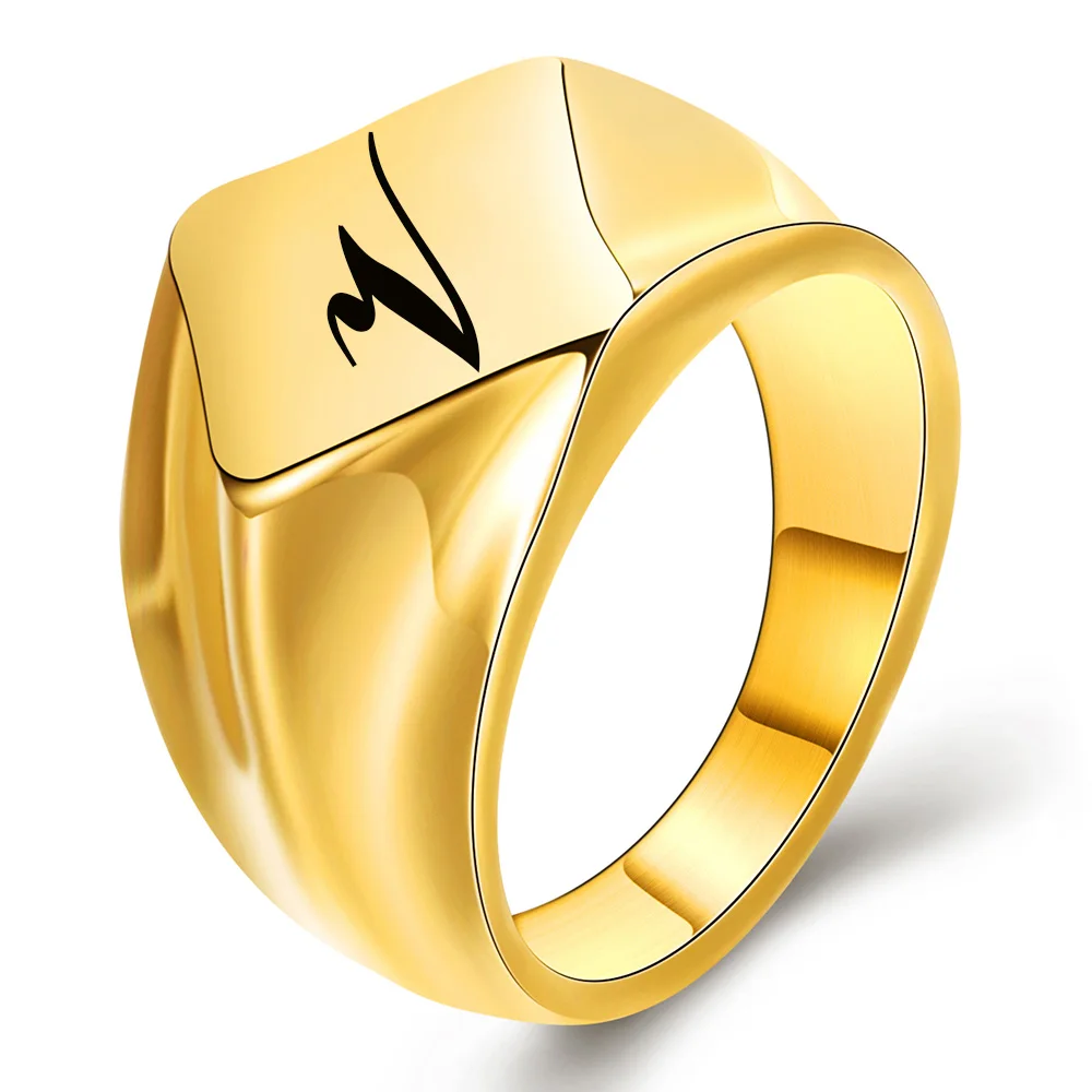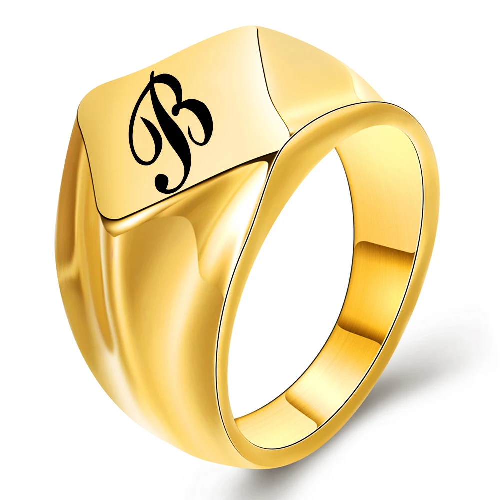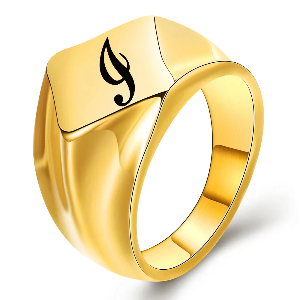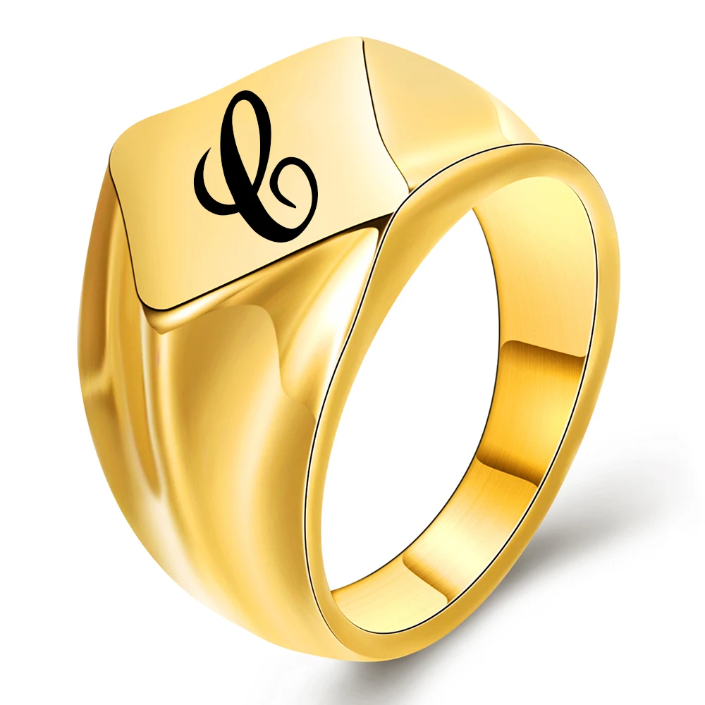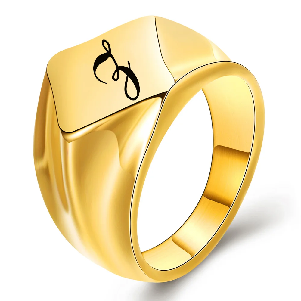 Геометрические кольца для мужчин, персонализированный штамп с именем, золотой браслет из нержавеющей стали, ювелирное изделие на заказ, оригинальный подарок