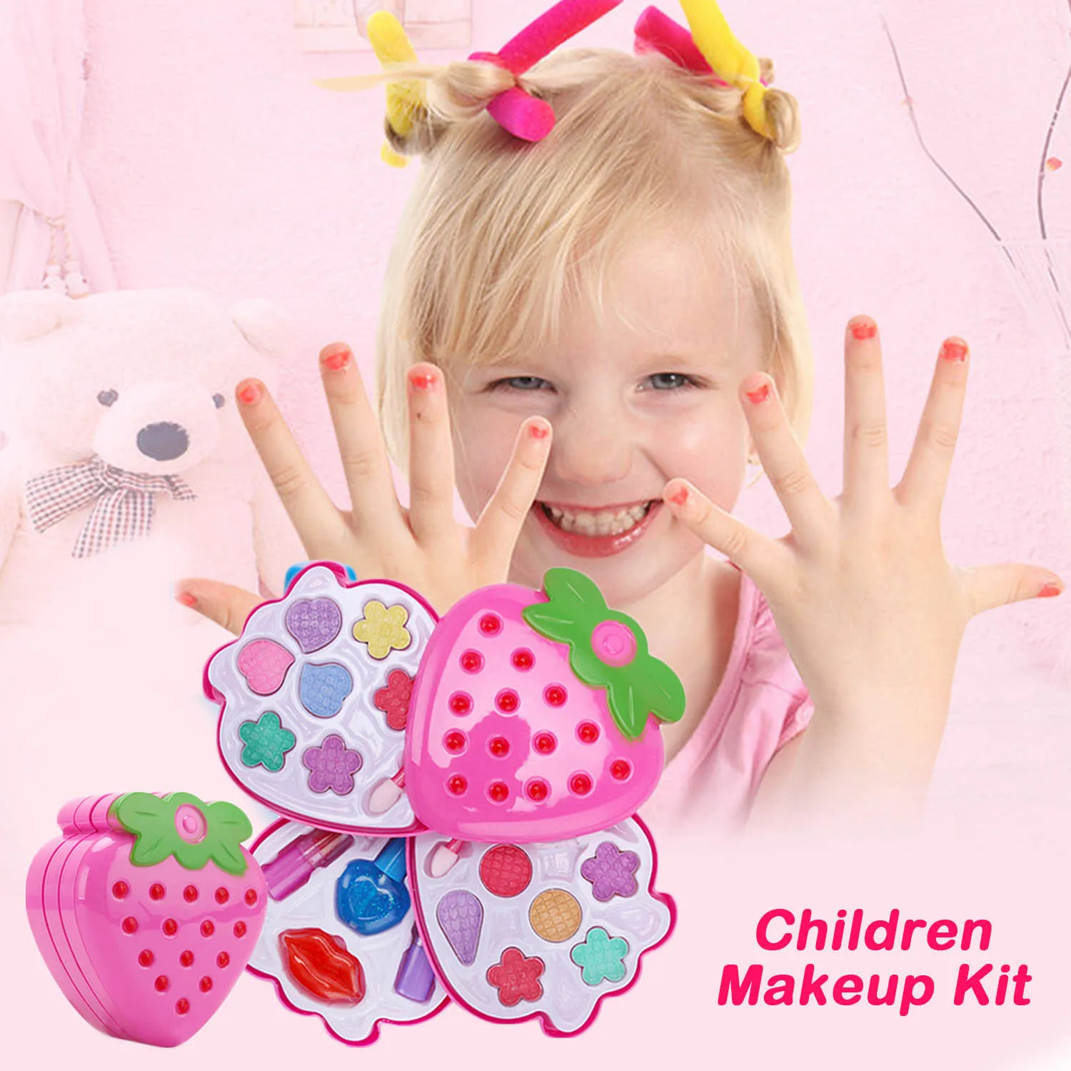 Детская 3-слойная кисть для теней для век в форме клубники для девочек румяна, помада, набор инструментов для макияжа, косметическая коробка, игрушка для ролевых игр