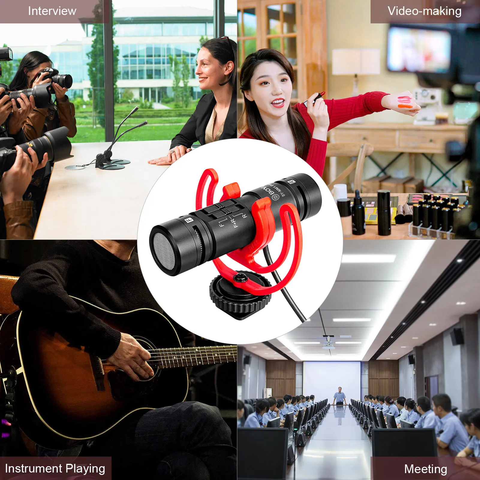 Широкое применение:Микрофон может быть широко применен в производстве Vlog телефона, записи видео камеры, интервью, пения, записи инструмента, подходит для смартфонов, DSLR, беззеркальной камеры, видеокамеры, ручки записи и многое другое.