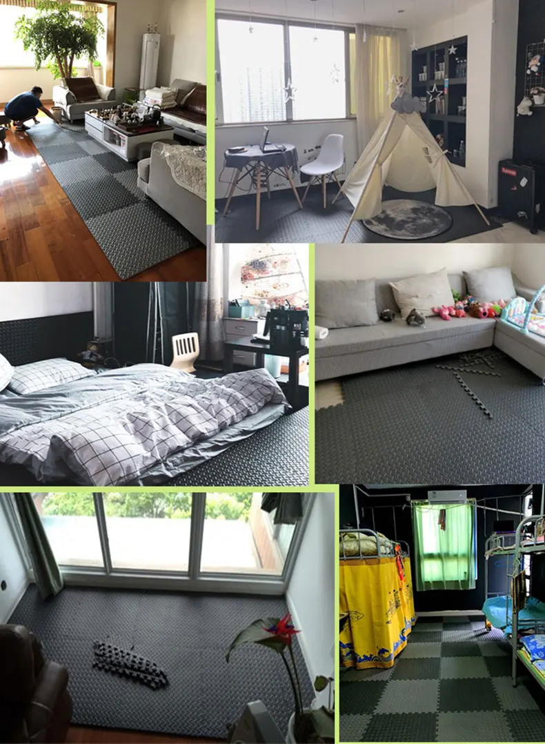 Особенности:1. Производство новых материалов, защита окружающей среды, нетоксичный2. Супер гибкий, не боится удариться при использовании3. Легко собрать, можно собрать вместе с родителем-ребенком4. Изготовлен из экологически чистого материала EVA, водонепроницаемый и не легко проникает.5. Обеспечивает амортизацию на твердых поверхностях пола в гимназиях, выставках, школах, дневных садах, игровых залах и детских комнатах.