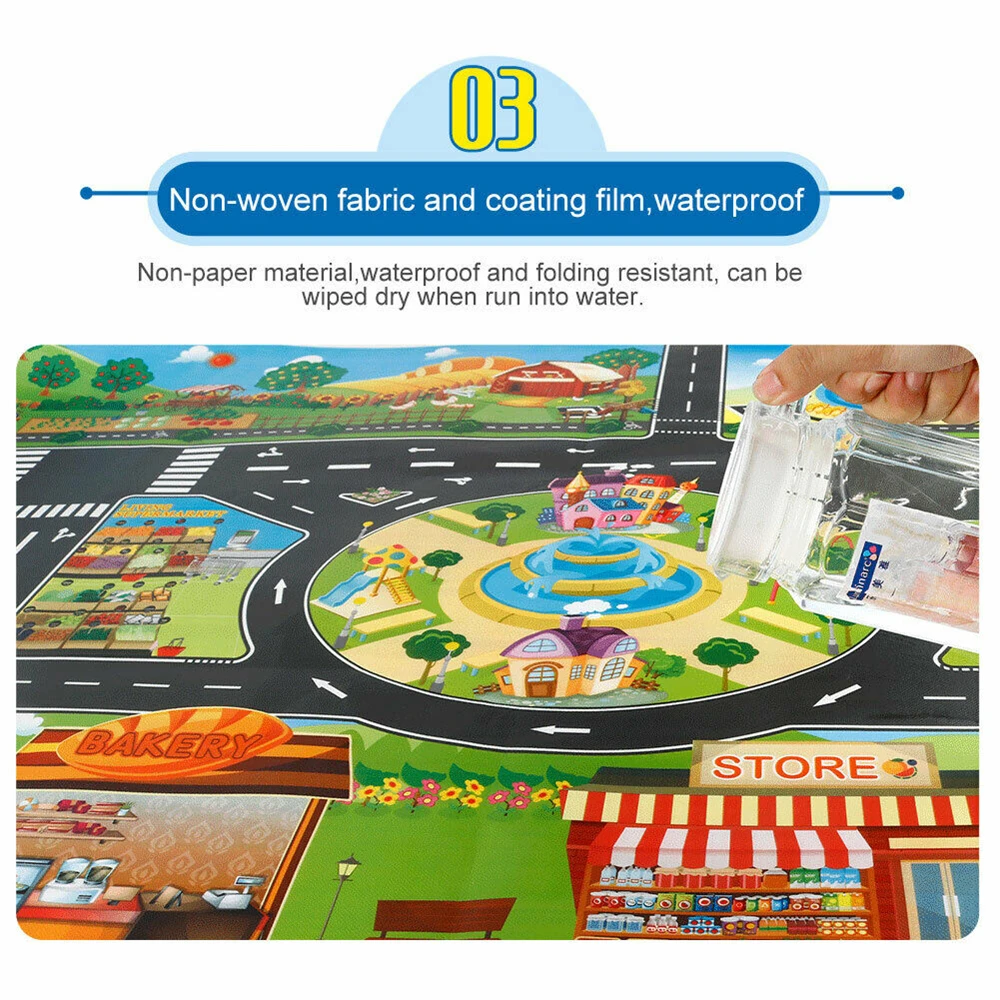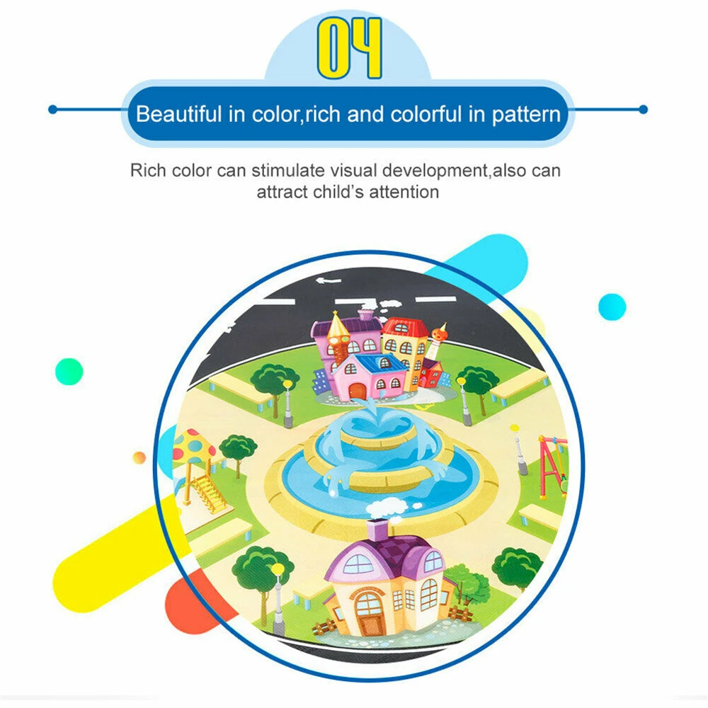 Качественные материалы, текстура, более прочные Водонепроницаемый дизайн, можно скраб водой, можно сложить, легко хранить Многоцелевой, способный как гоночный автомобиль трек, может играть pad, открытый коврик, легко носить с собой Тренируйте способность детей работать, когнитивные способности