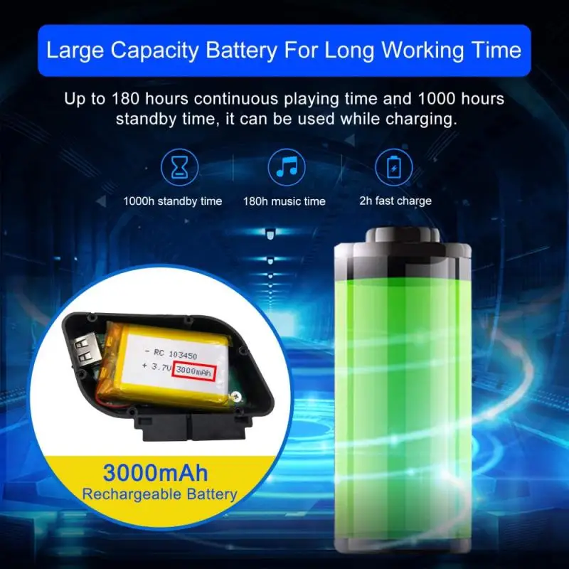 * Емкость аккумулятора 3000 мА, воспроизведение в течение 180 часов. Встроенный литий-ионный аккумулятор, длительное время работы