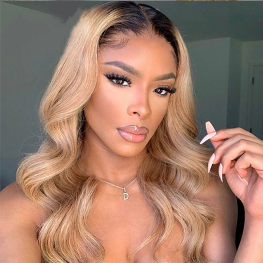 Nadula волосы 13x4 тела волна хайлайтер парик человеческие медовый блонд Кружева
