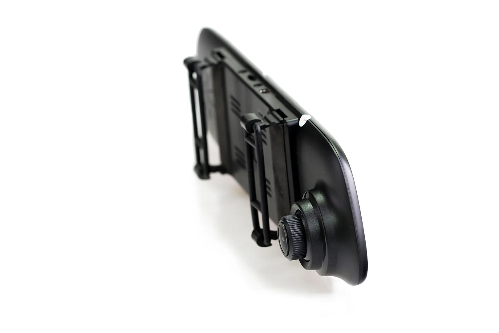 Fixing the DVR on the mirror is carried out with the help ofSpecial rubber wiring harness, A set of which is included in the standard package. Rubber stretch marks reliably girth the body of the regular mirror and provide a rigid fixation of the DVR, which does not allow shaking and vibration. In appearance, the DVR resembles a panoramic mirror, without attracting the attention of others.