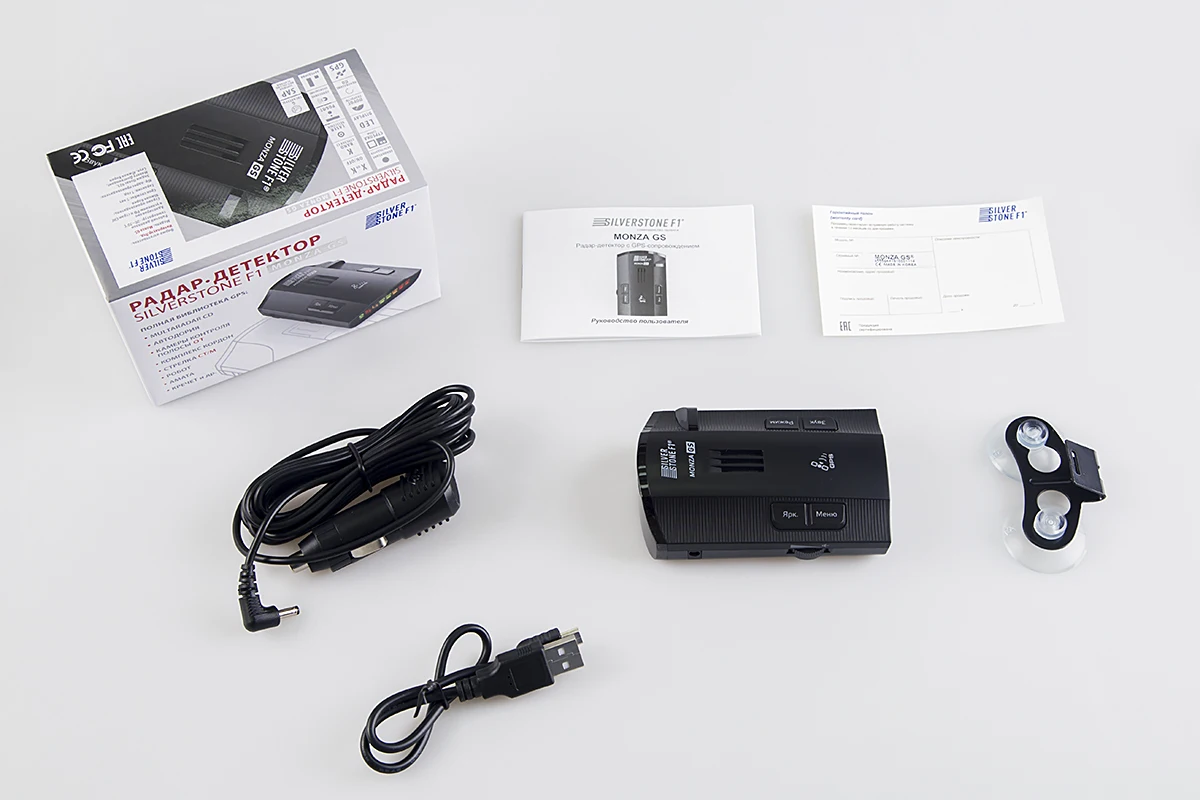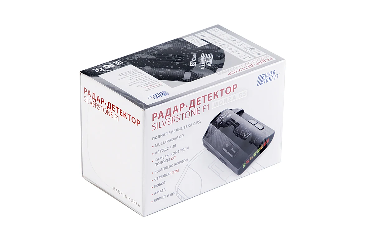В новом радар-детектореSilverStone F1 Monza GS, как и в его прототипе Monaco GS, работаютG-сигнатуры- это данные о полицейских радарах и иных системах контроля дорожного движения. C помощью голосового оповещения и индикации на дисплее устройство предоставляет пользователю исчерпывающую информацию о том, каким образом на участке контролируется скорость движения или соблюдение других правил дорожного движения. Радар-детектор оповещает о: