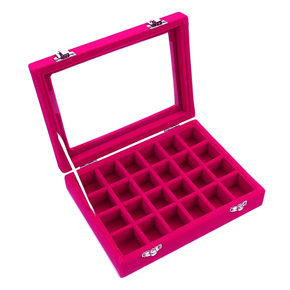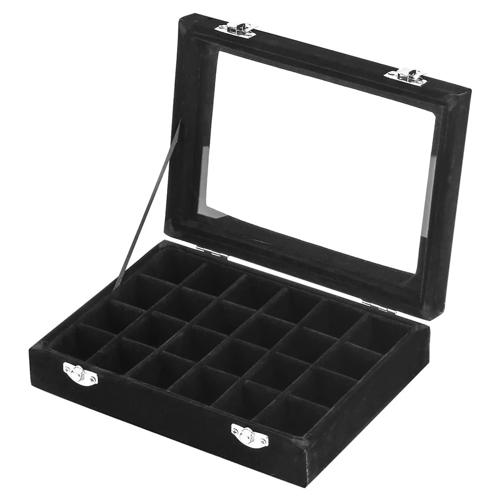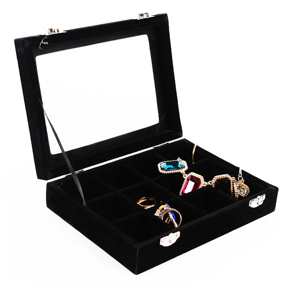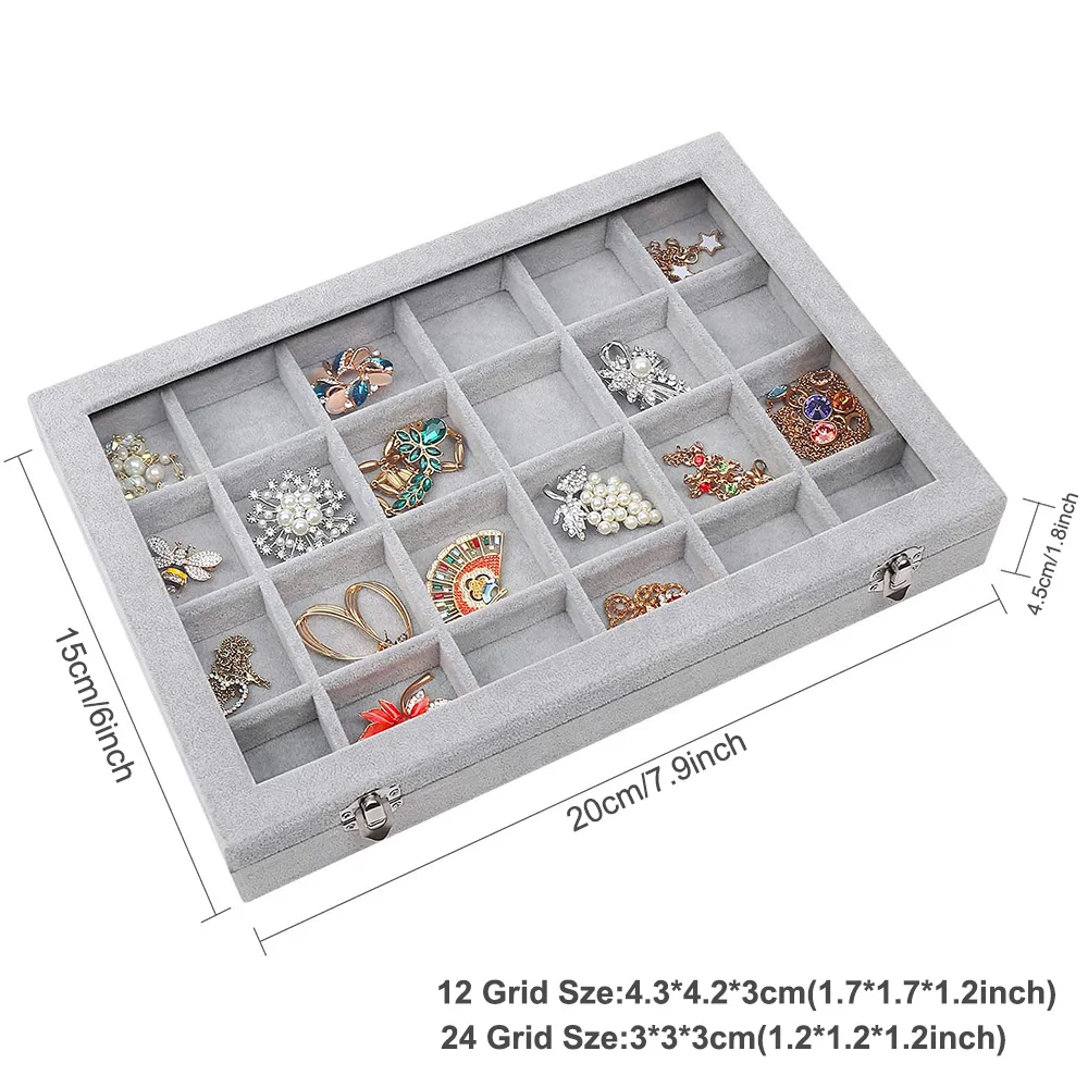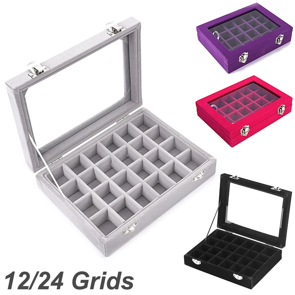 12 сеток 24 Сетки Коробка для хранения ювелирных изделий прозрачная стеклянная крышка запираемый бархатный Органайзер лоток кольцо серьги Дисплей чехол с прозрачной крышкой браслеты держатель для хранения Чехол коробка с замком подарки для девушек и женщин