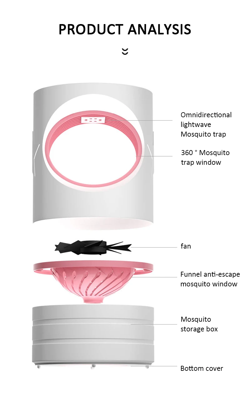 3. Мощный воздушный поток вентилятора может сделать вихревой, чтобы убить комаров безопасно и легко путем воздушной сушки и обезвоживания.