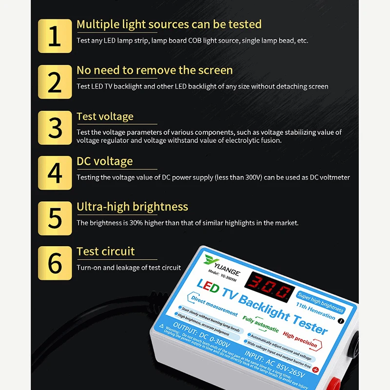 Нет необходимости снимать экран: протестируйте светодиодную подсветку телевизора и другую светодиодную подсветку любого размера без снятия экрана.