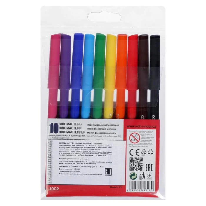 Набор (Да/нет) Да Вид колпачка для фломастеров Вентилируемый Количество товара в наборе 10.0 Особенности для фломастеров Трёхгранные Материал (универсальный) Пластик Количество цветов 10 Температурное ограничение транспортировки (да/нет) Нет Европодвес (да/нет) Да Штрихкод на единице товара (да/нет) Нет Вид упаковки PVC-пакет