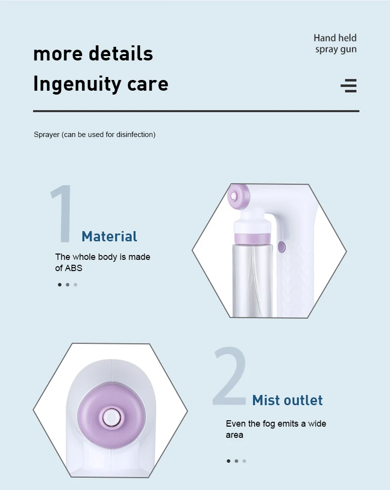 First, it is professional, multifunctional and cost-effective. In addition to daily environmental sanitation and disinfection, it can also replace indoor humidification, aromatherapy, water replenishment, sprinklers and other frugal home choices.