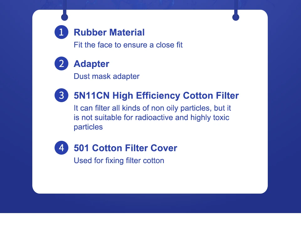 -Особенности: удобный и прочный, моющийся, эргономичный дизайн, может использоваться для различных частиц газа и пара