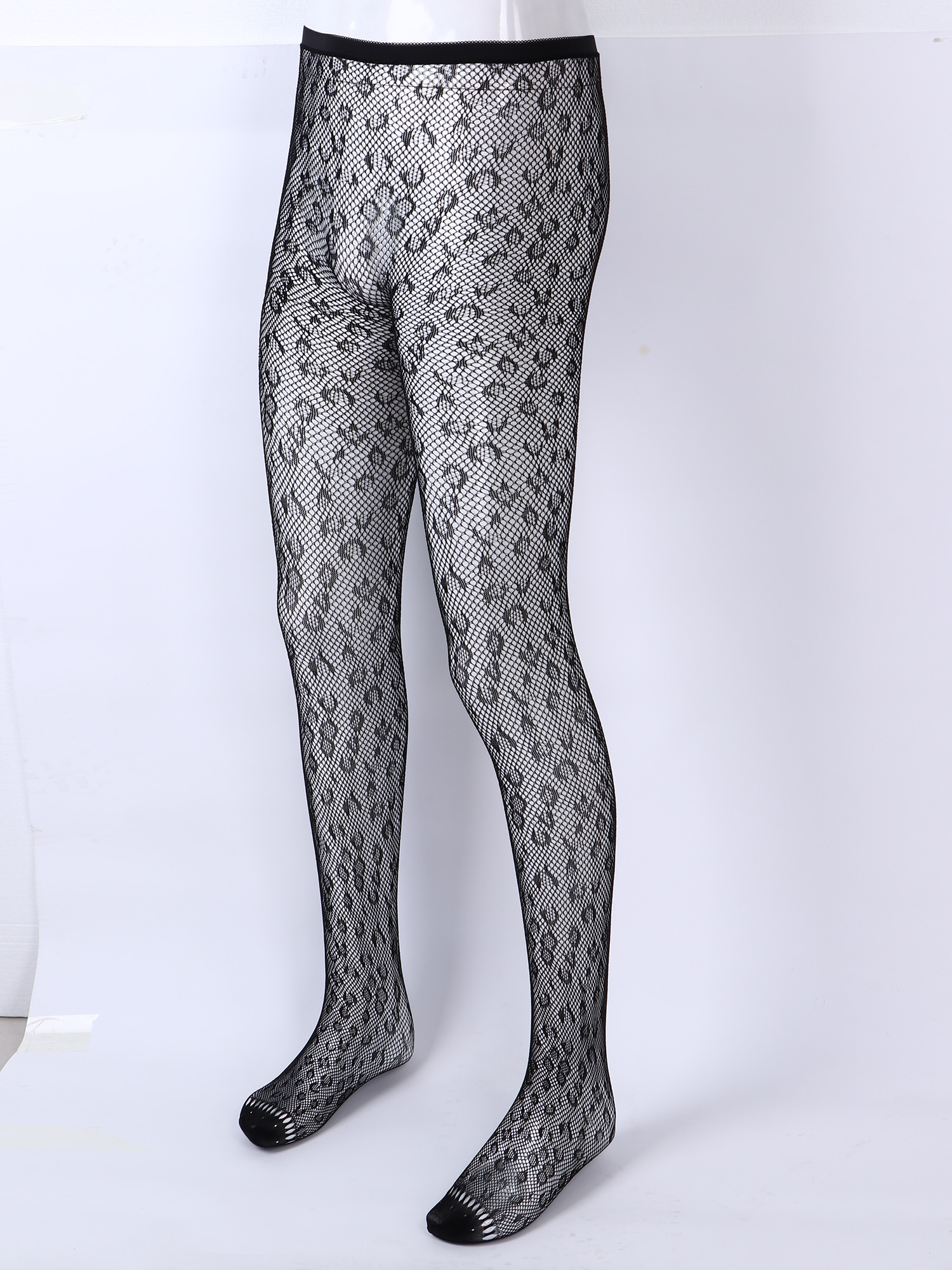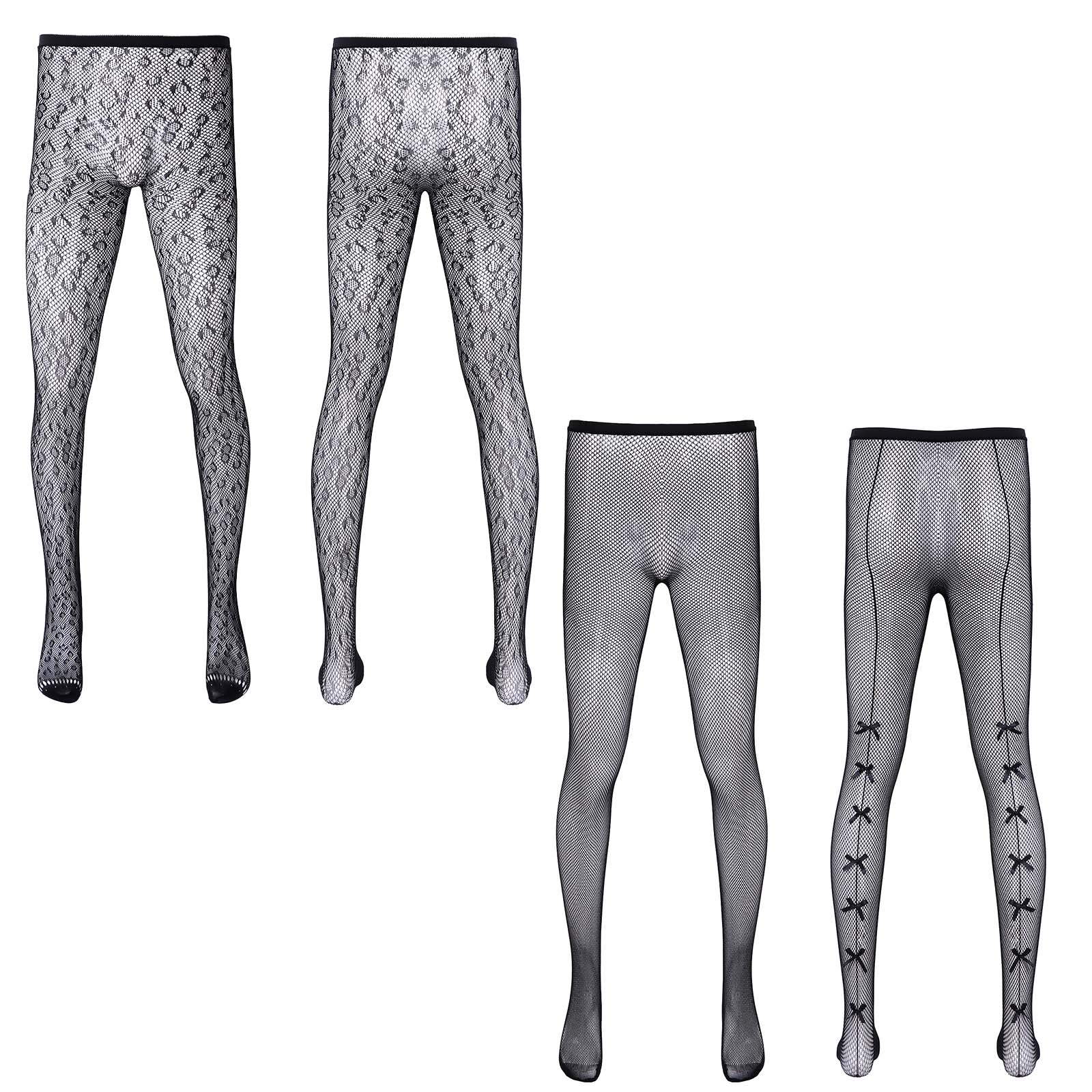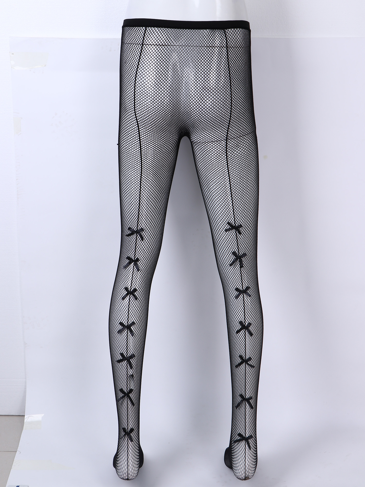 Мужские сексуальные чулки, нижнее белье, высокие тянущиеся колготки, прозрачные, с бантом сбоку/леопардовые леггинсы-сетка, Sissy Gay, прозрачные обтягивающие штаны