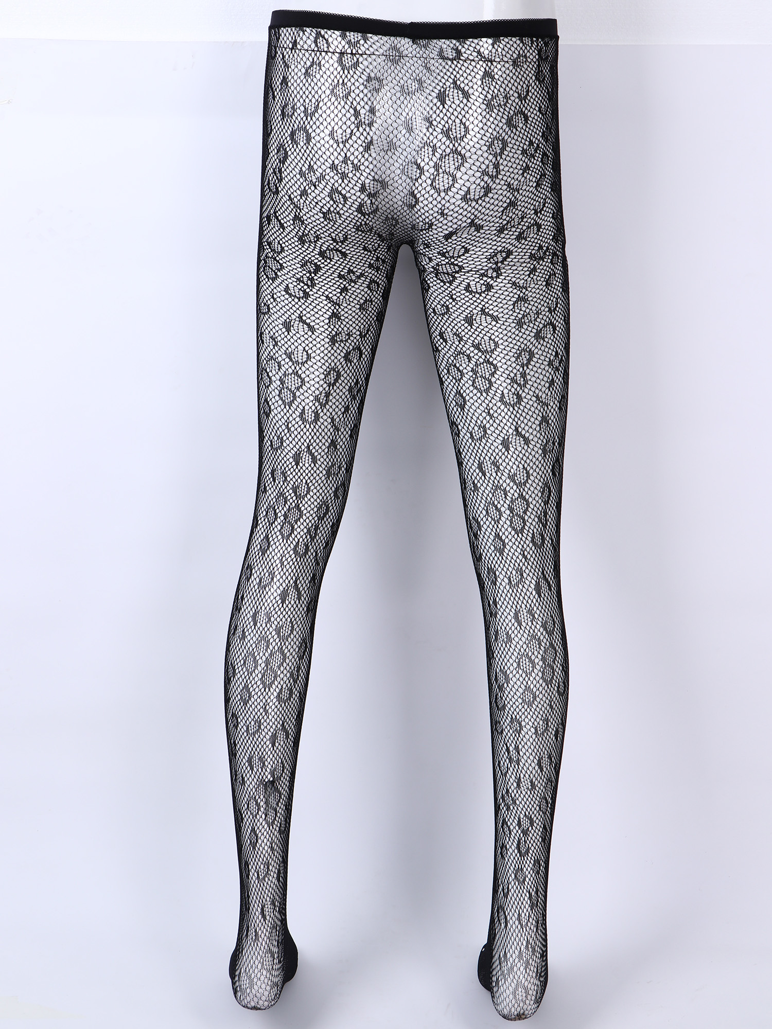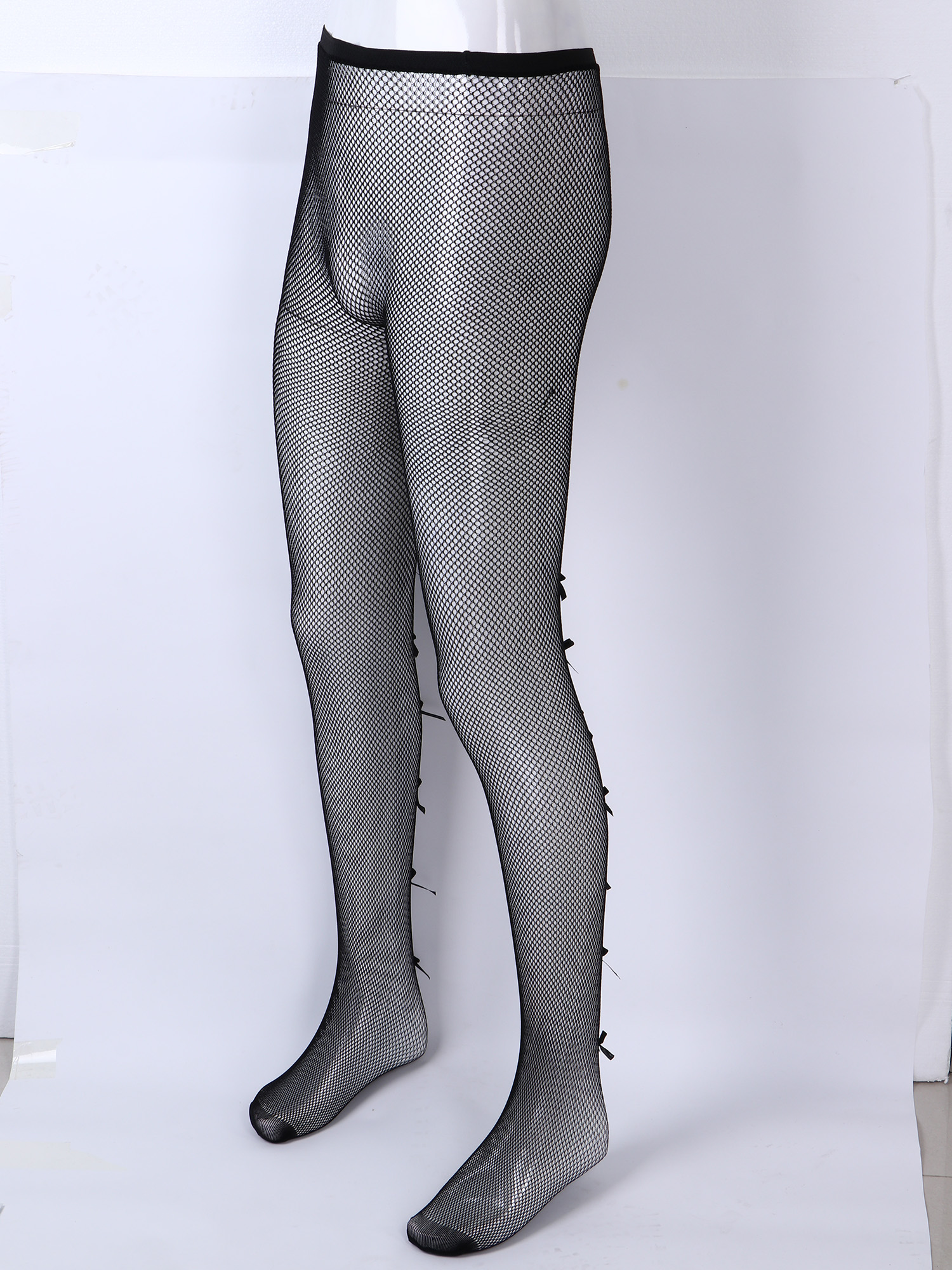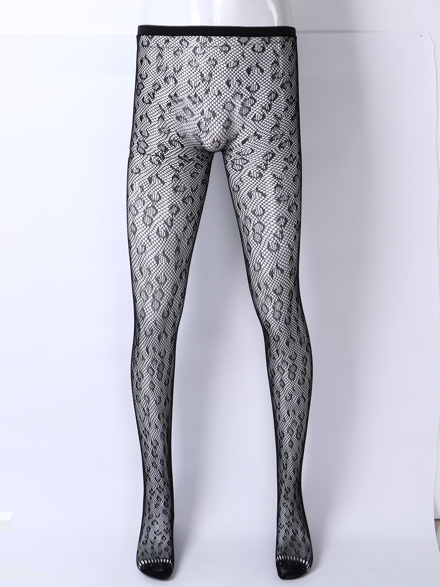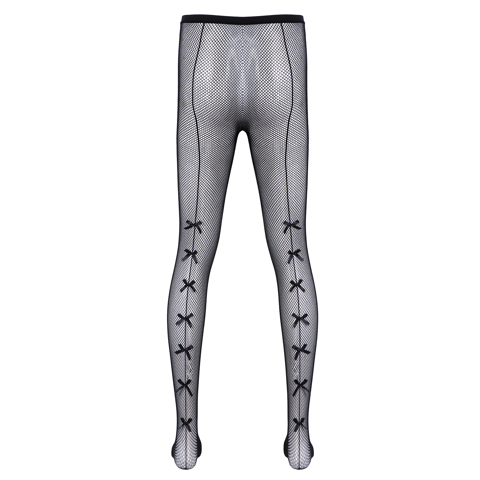 Мужские сексуальные чулки, нижнее белье, высокие тянущиеся колготки, прозрачные, с бантом сбоку/леопардовые леггинсы-сетка, Sissy Gay, прозрачные обтягивающие штаны