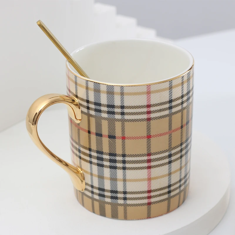 Первоклассные фарфоровые кофейные чашки с подходящей золотой ложкой, доступны два стиля