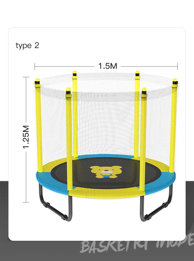 Тяжелый судить 4 дюйма пружины обеспечивают превосходное качество отказов и устойчив к коррозии. Коврик для прыжков изготовлен из сверхпрочного полипропилена с УФ-защитой для прочности и долговечности. Дизайн желтого цвета делает батут более спортивным и динамичным.