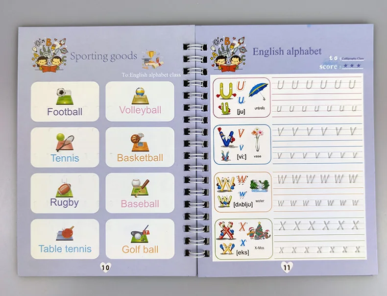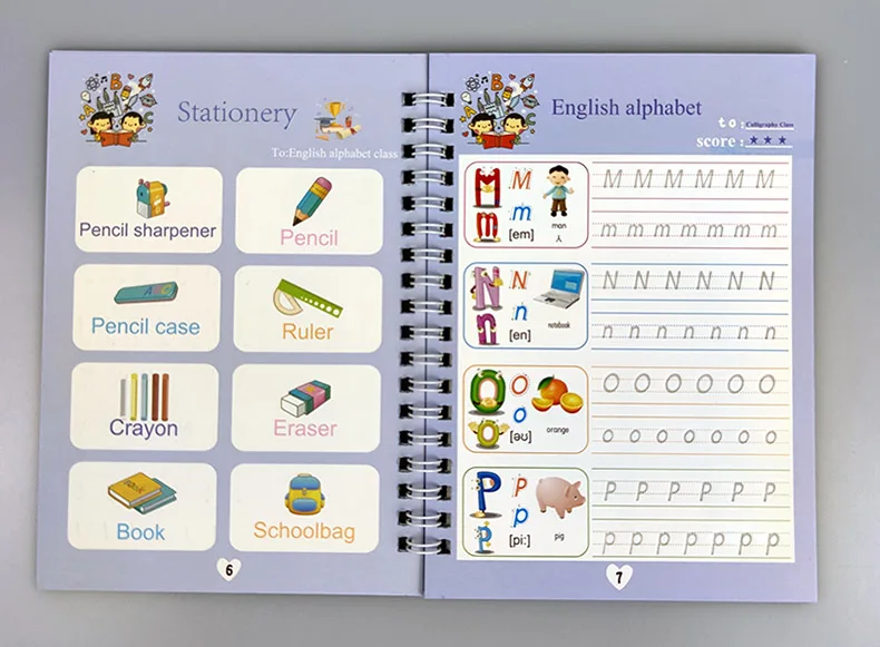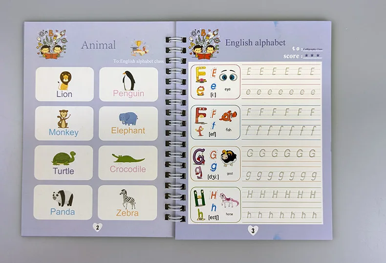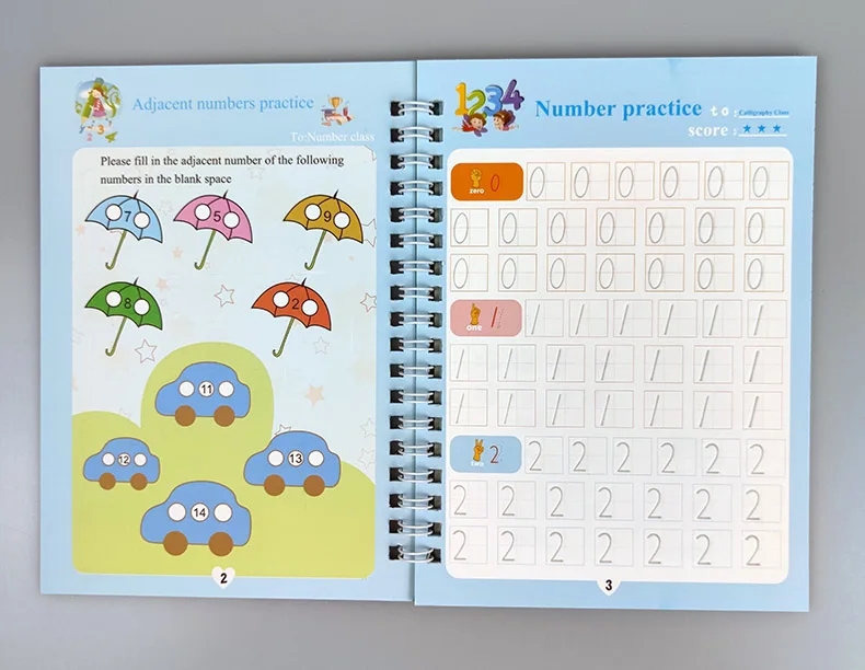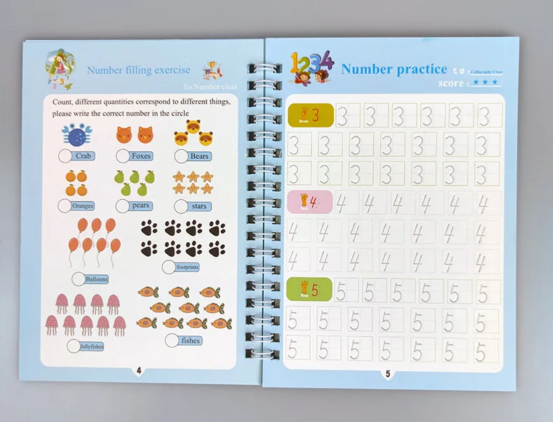 4 книги/набор волшебных тетрадей, Многоразовые Детские игрушки для записи английских цифр и букв, 3d-каллиграфия Монтессори