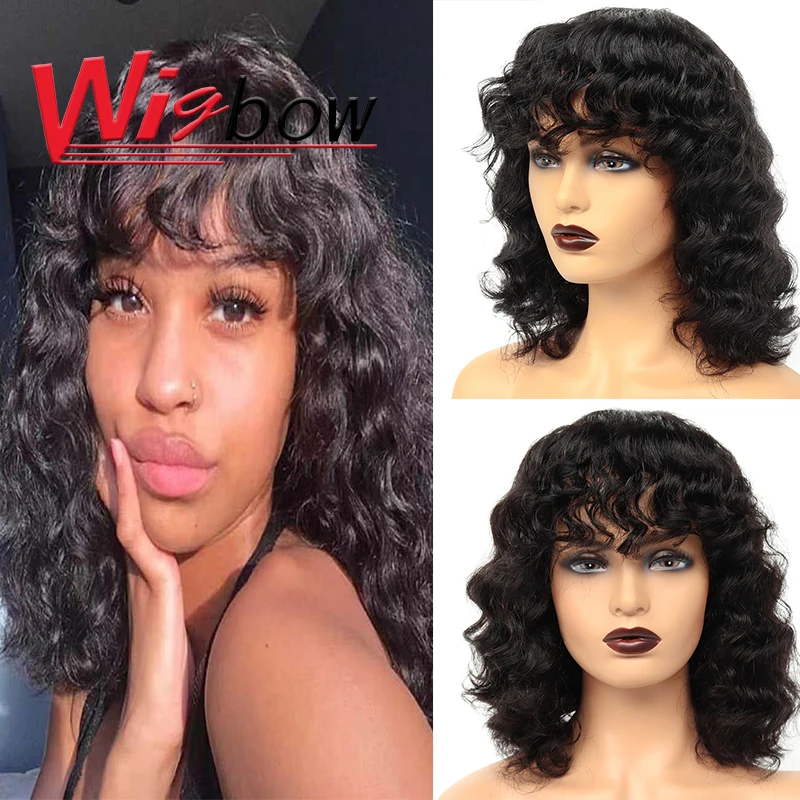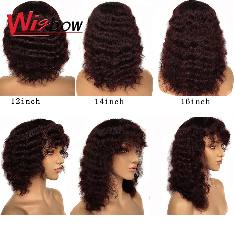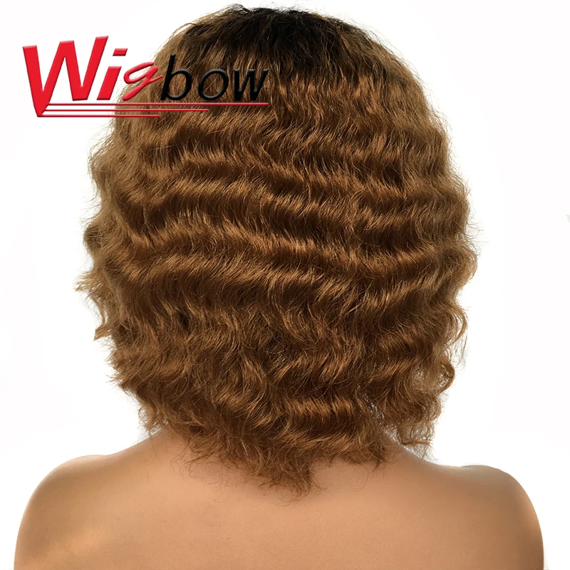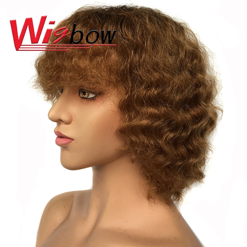 Короткие парики из человеческих волос с волнистой челкой, Кудрявые Парики для женщин, монгольские парики из натуральных волос Remy с эффектом омбре, T1B/30, парики из каштановых волос с бахромой